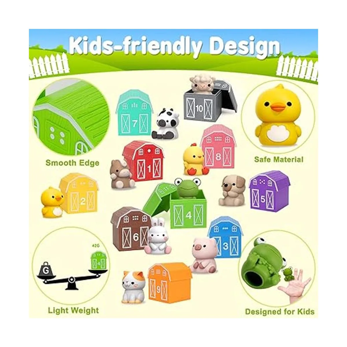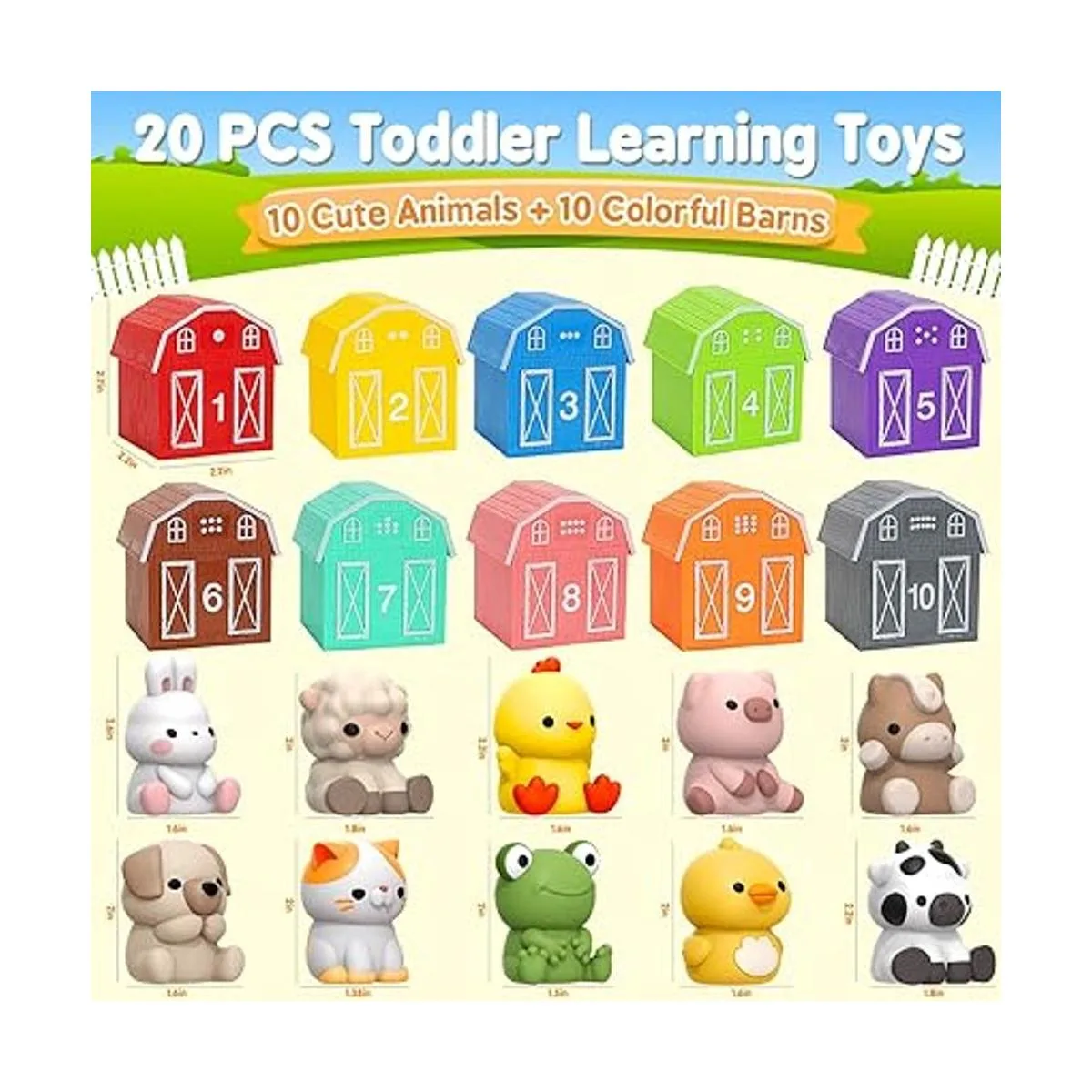Juguetes de aprendizaje para niños pequeños de 1, 2 y 3 años, 20 piezas de animales de granja, juguetes Montessori para contar, combinar y clasificar juegos de motor fino, regalo de Navidad de cumpleaños, Pascua para bebés y niñas de 12 a 18 meses