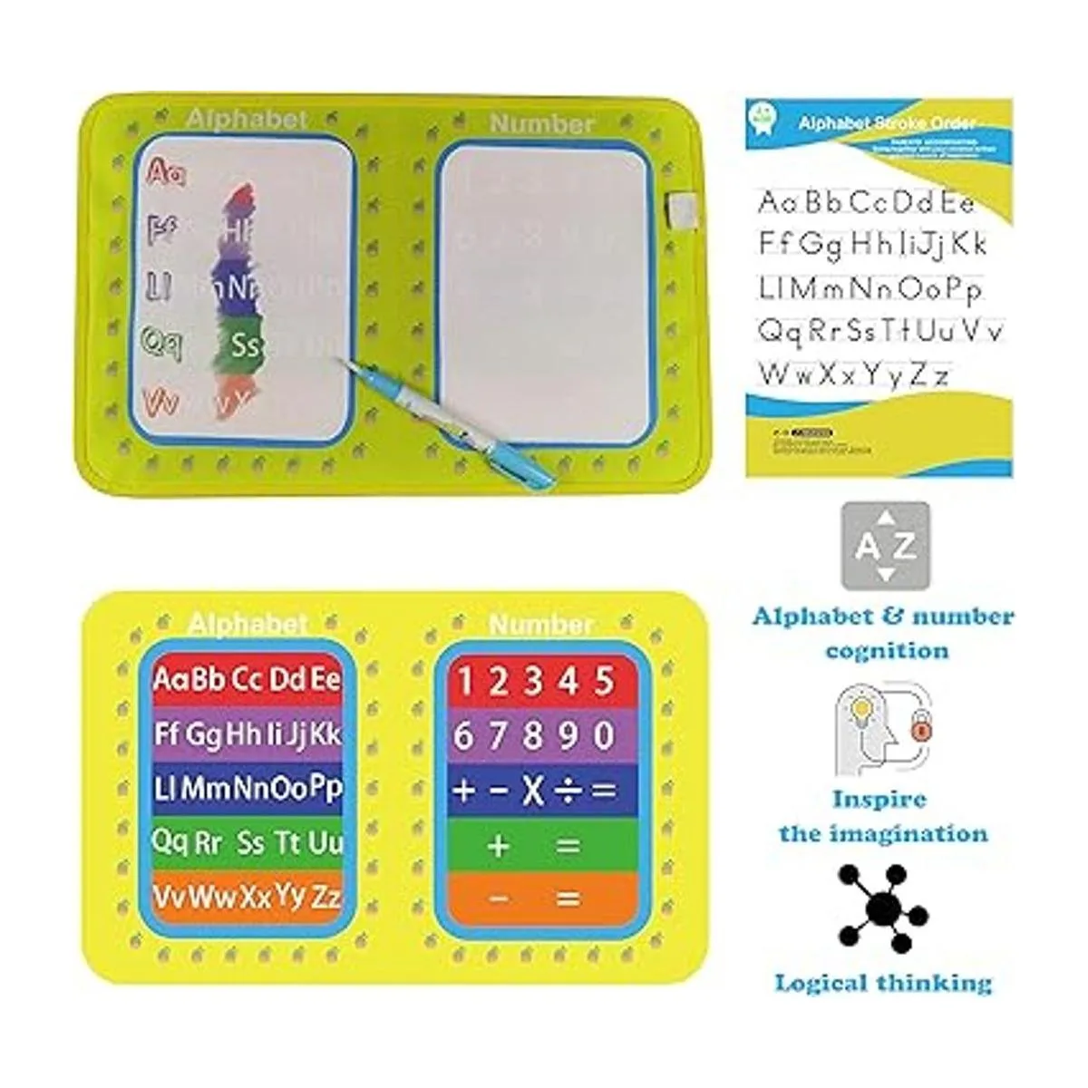 Alfombrilla mágica para garabatos laterales: la alfombrilla mágica incluye 26 alfabetos y trazado de números 09. Y con nuestros accesorios, los niños pueden comenzar rápidamente a garabatear en la página. Es una manera divertida de practicar el rastreo de alfabeto y números. Esto ayuda a tus hijos a aprender conocimientos básicos, desarrollar la cognición del color, inspirar su imaginación y encontrar la alegría de aprender.