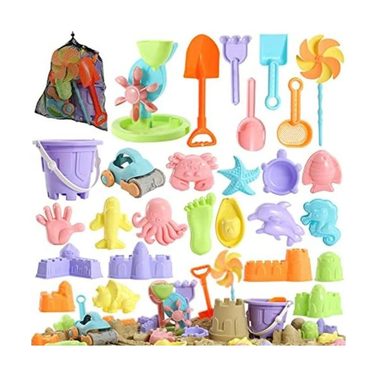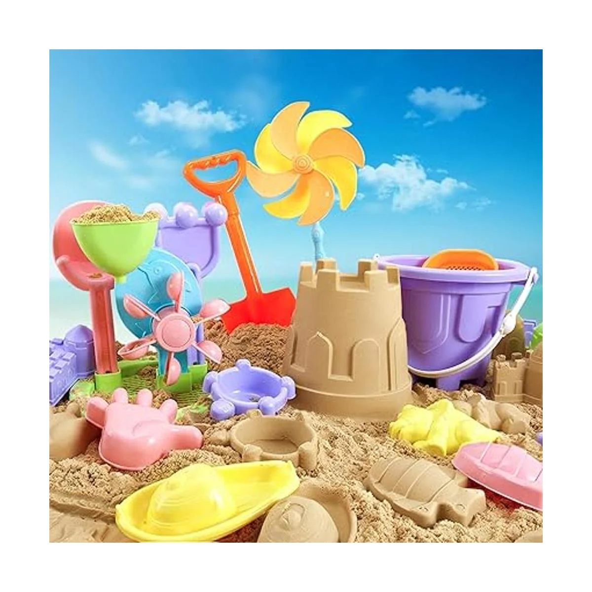Juguetes de arena de playa para niños, juego de 31 juguetes de caja de arena para niños de 3 a 10 años, juguetes de castillo de arena con rueda de agua, cubo, kit de herramientas de pala, molino de viento, moldes de arena, juguetes de playa de verano en bolsa de malla, juguetes de playa para niños al aire libre