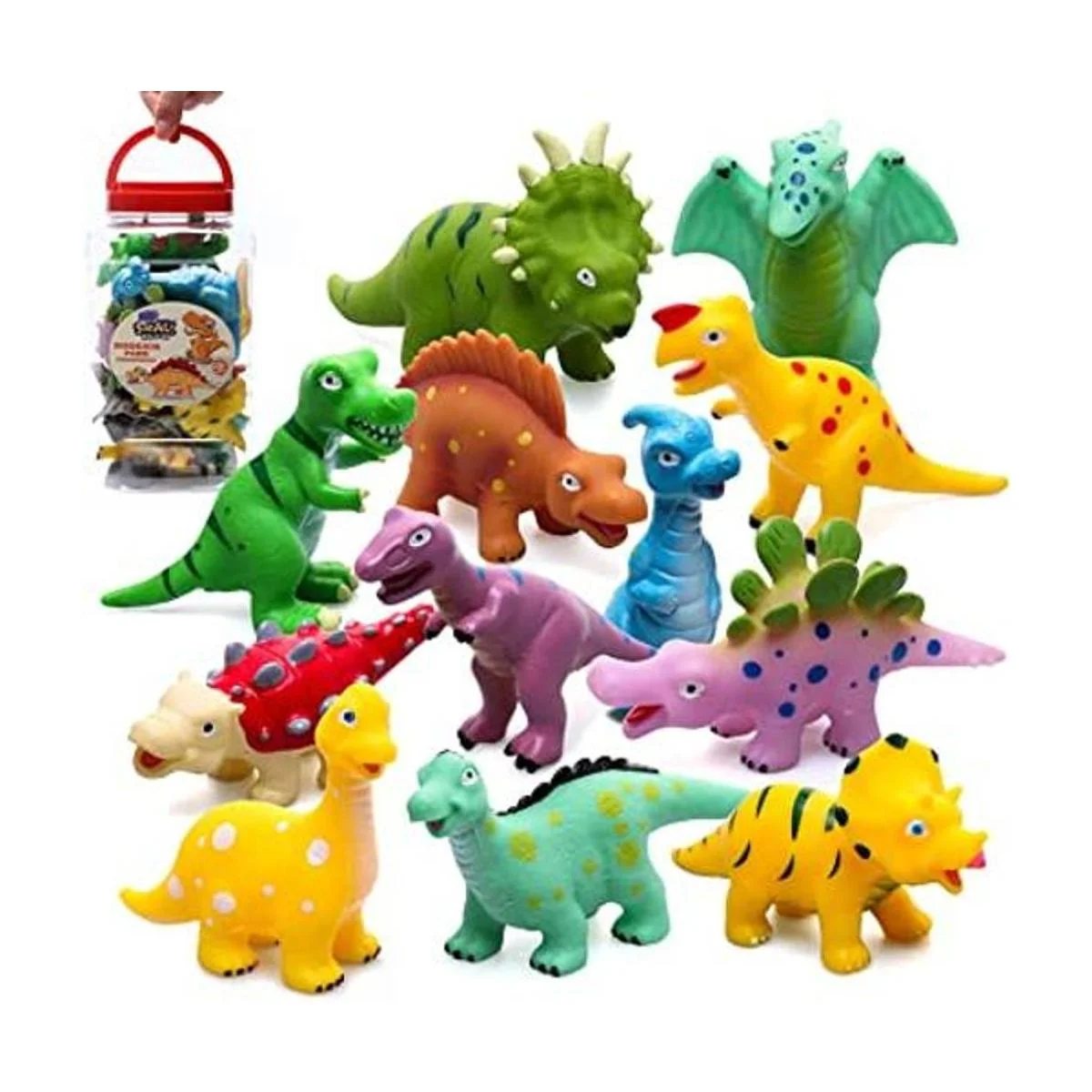 12 juguetes de baño de dinosaurios suaves sin agujeros y decoración de 4 piedras hechas con calidad premium y vibrante color pintado a mano, resistente y duradero, ideal para que los niños pequeños descubran diferentes colores y diferentes dinosaurios