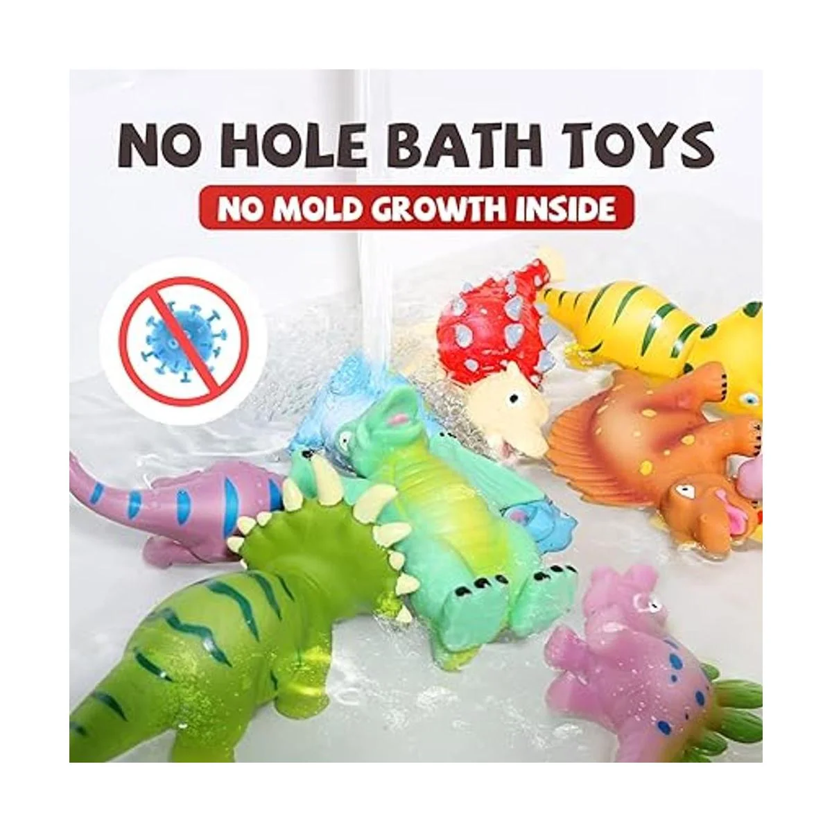 Juguetes de baño de dinosaurio para bebé sin agujeros 12