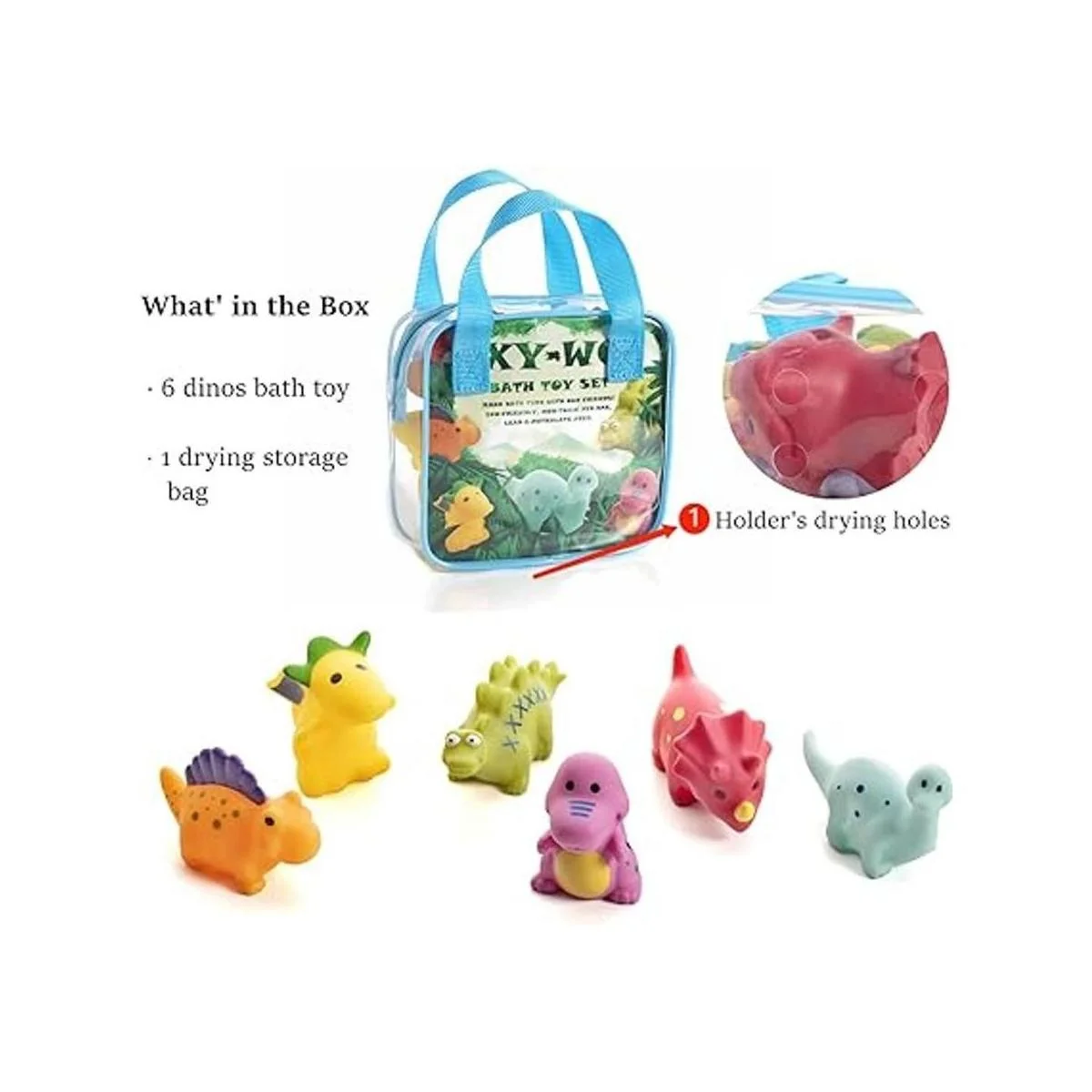 Juguetes de baño de dinosaurio sin agujero para bebés de 6 a 12 a 18 meses, juguetes de bañera sin moho, niños de 1 2 3 4 años 6 piezas con bolsa de almacenamiento
