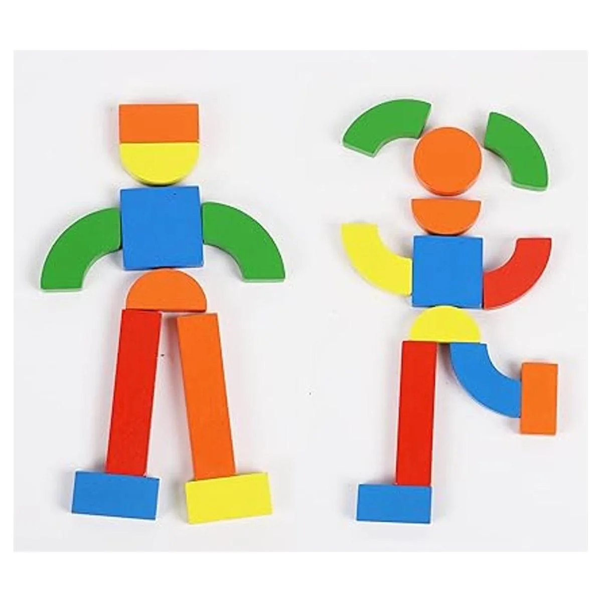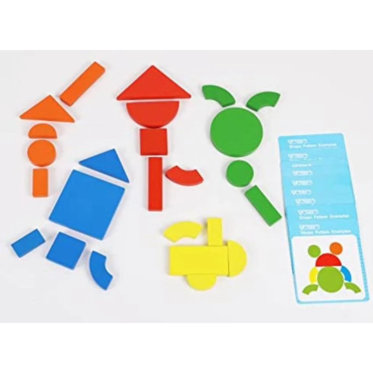 Madera natural de alta calidad con acabado fino. 20 patrones sugeridos de animales, objetos, etc. están impresos en 10 tarjetas incluidas con el juego de juguetes. Los niños pueden copiar estos patrones o crear los suyos propios como se muestra en las fotos