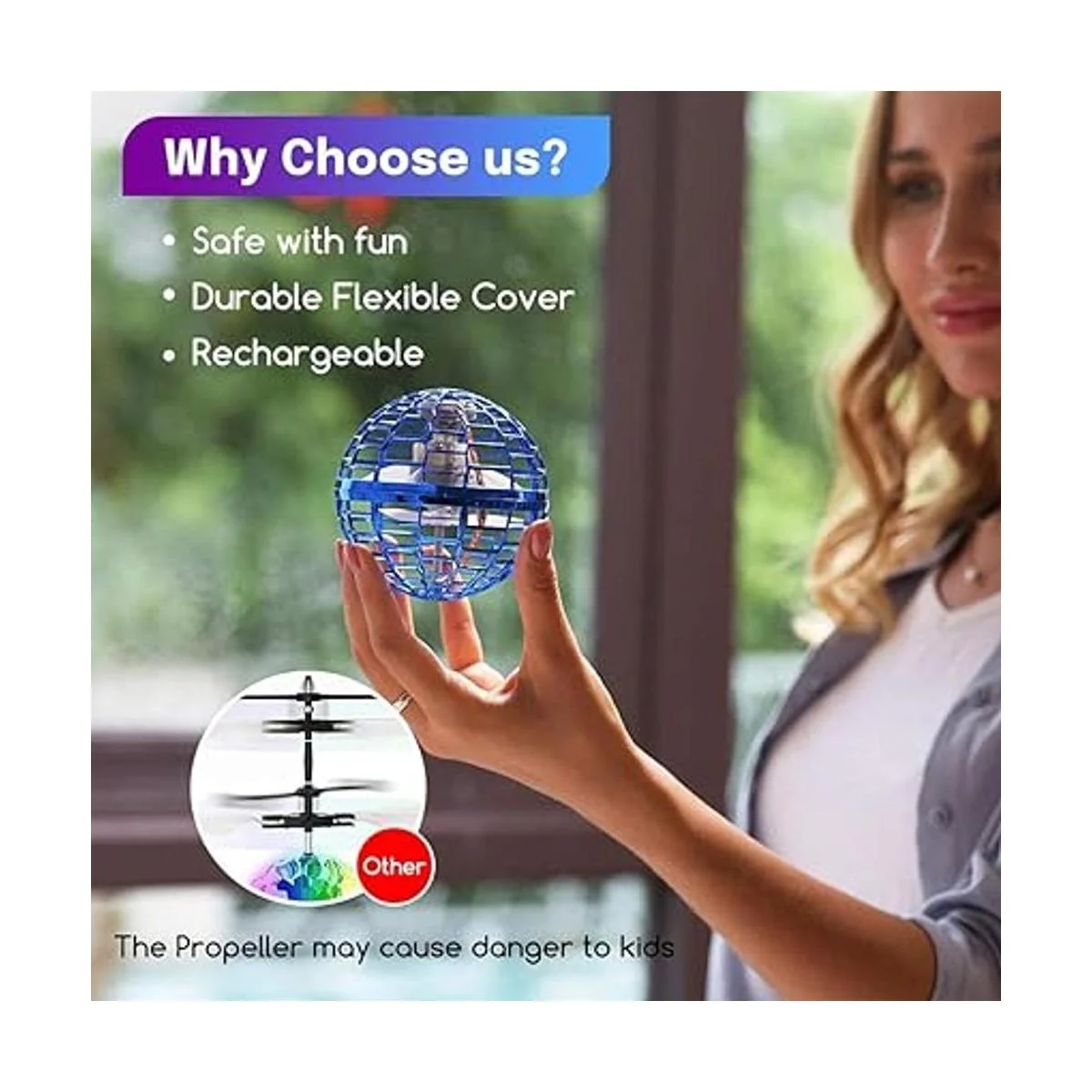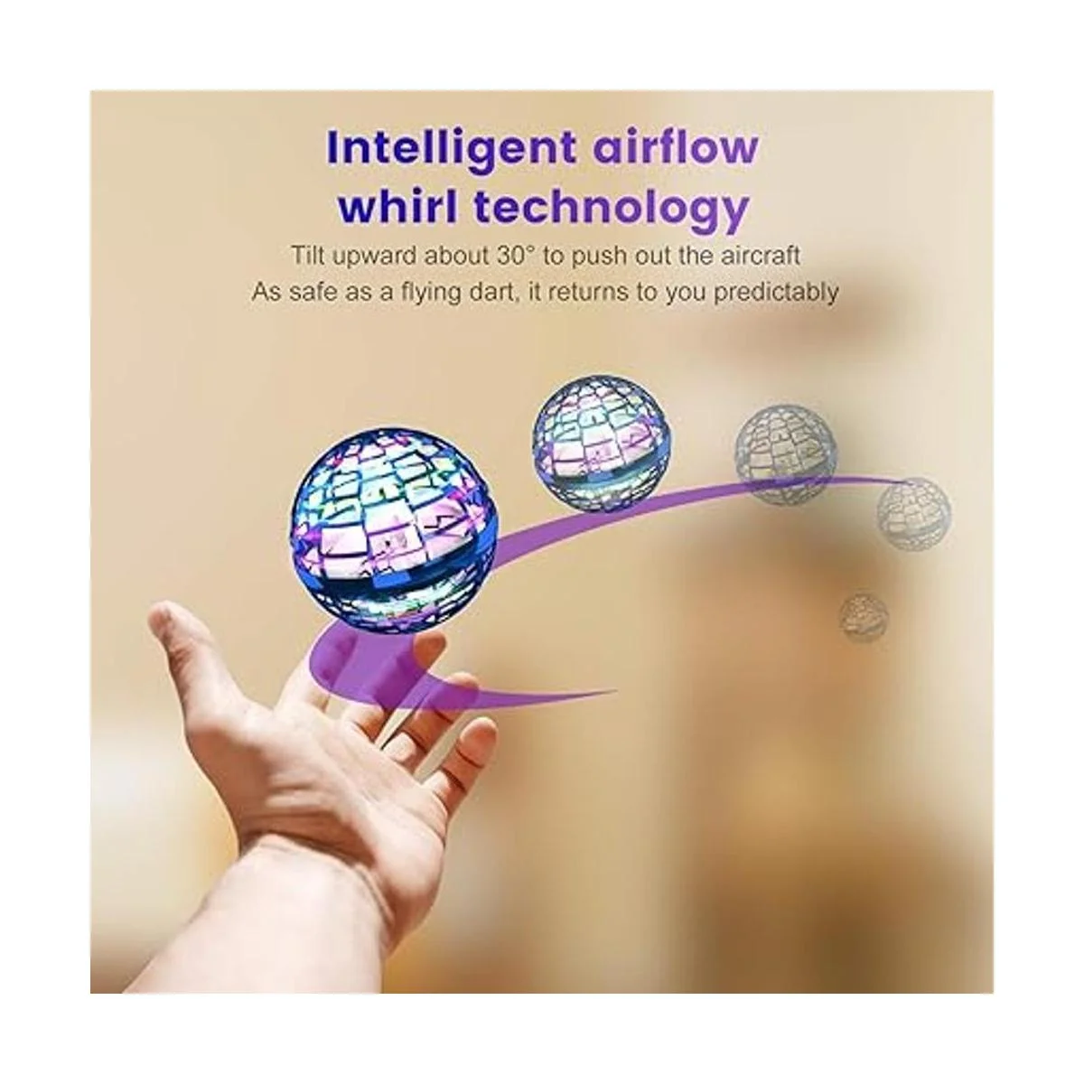 Diseño seguro y duradero: los juguetes voladores realizaron rigurosas pruebas. Los materiales son muy suaves, la carcasa protectora del diseño esférico se adopta para garantizar la seguridad, la durabilidad y la resistencia al impacto del juguete de bola voladora.