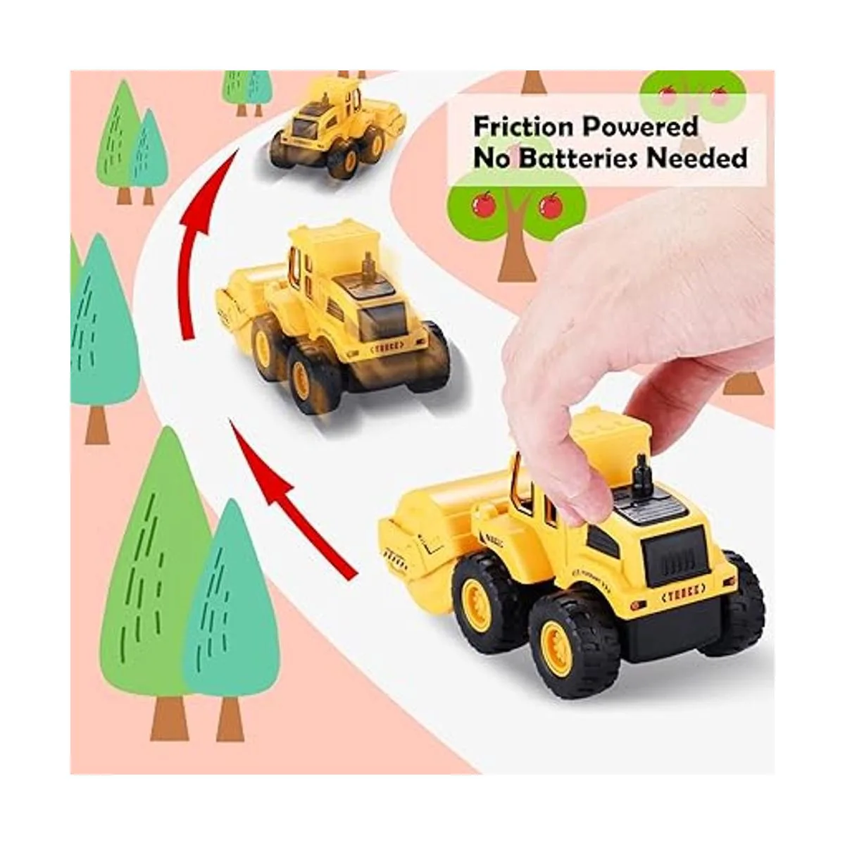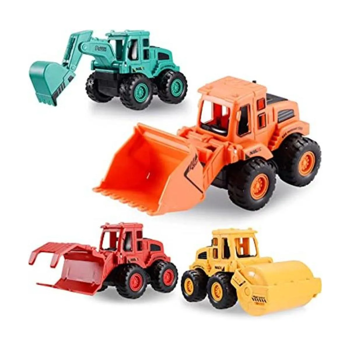 Juguetes de construcción para niños y niñas de 3 años, juguetes de construcción impulsados por fricción, camiones de arena, camiones con excavadora, excavadora, rodillo de carretera paquete de 4 coloridos
