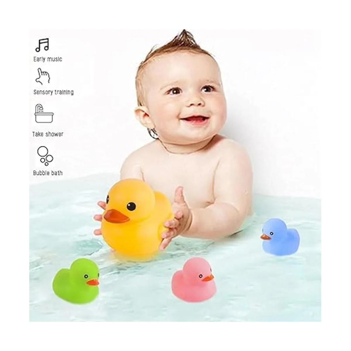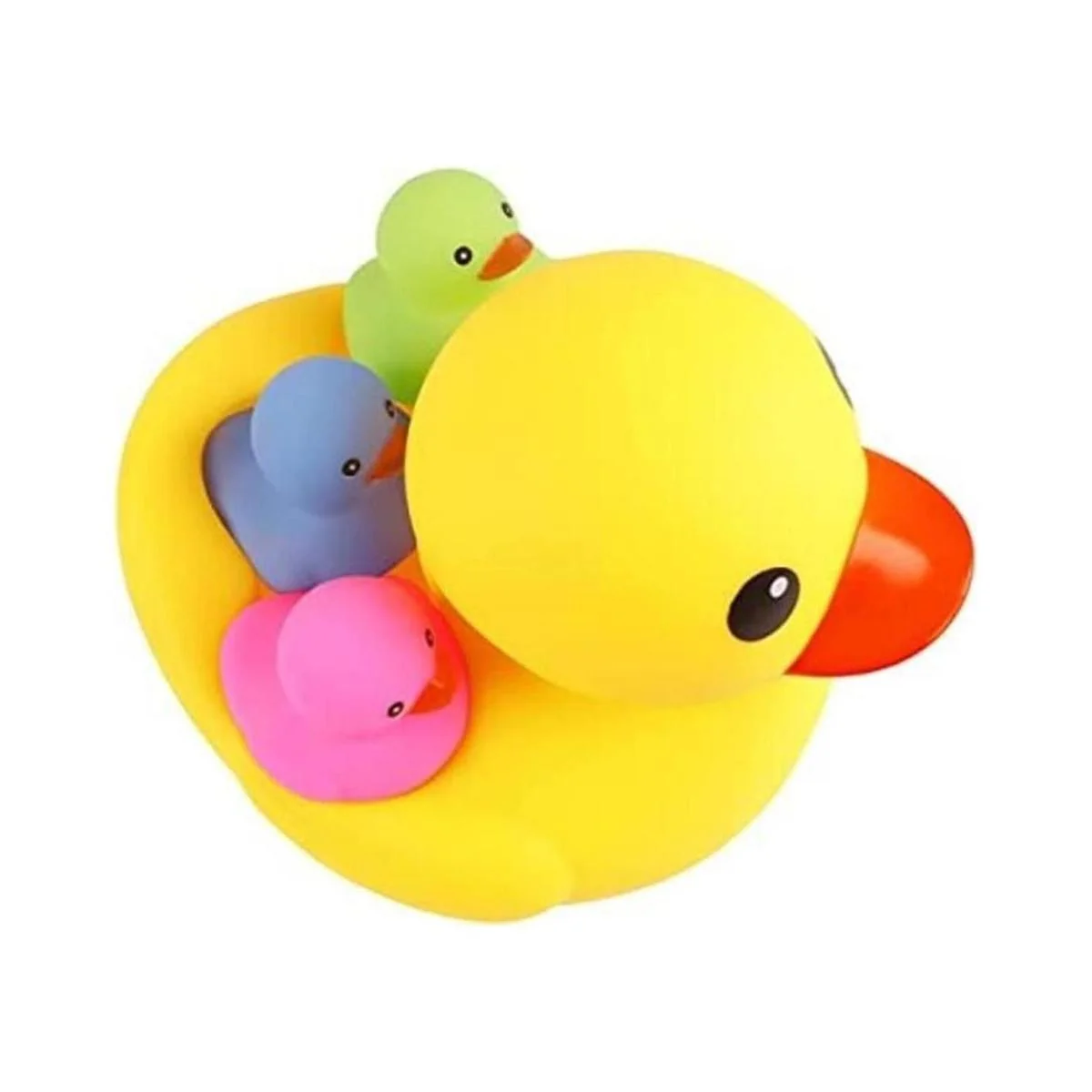 Juguetes de pato de baño, 4 piezas familiares de goma flotadores y chirriantes para bebés y niños pequeños preescolares para bañera de ducha (colorido)