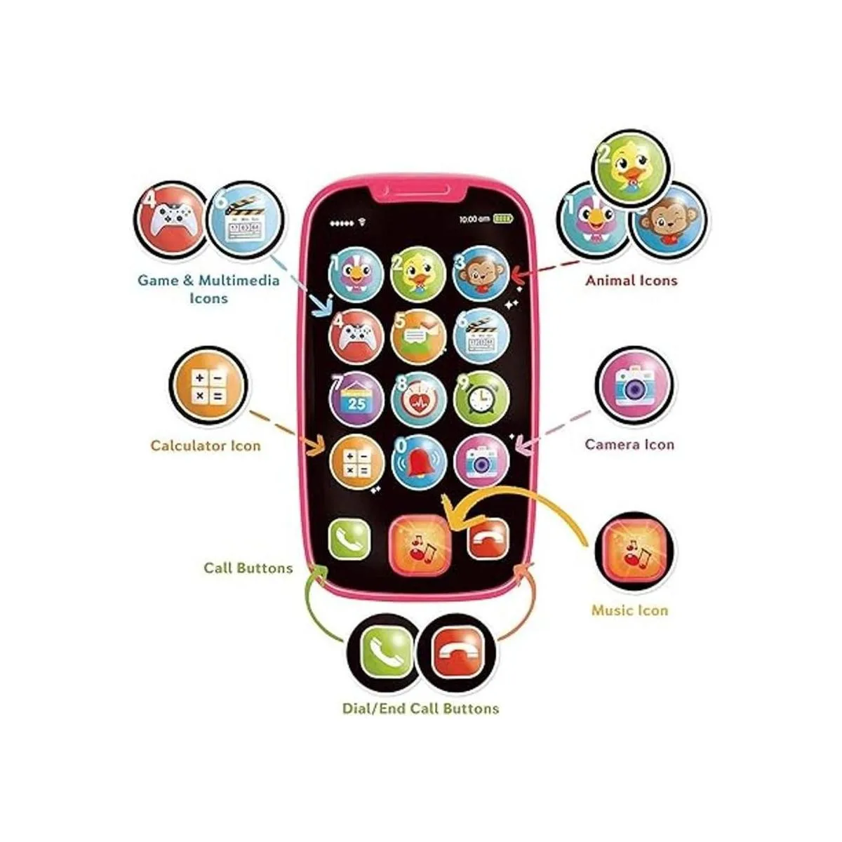Mantén a los bebés alegres en juegos de rol: juguete de teléfono inteligente de pantalla completa con 12 iconos, cada botón de teléfono de juguete reproduce efectos de sonido realistas de acuerdo con el icono de la imagen: animales, teléfono, reloj despertador, joystick, cámara y más; los juguetes interactivos para bebés son divertidos mientras aumentan el aprendizaje.