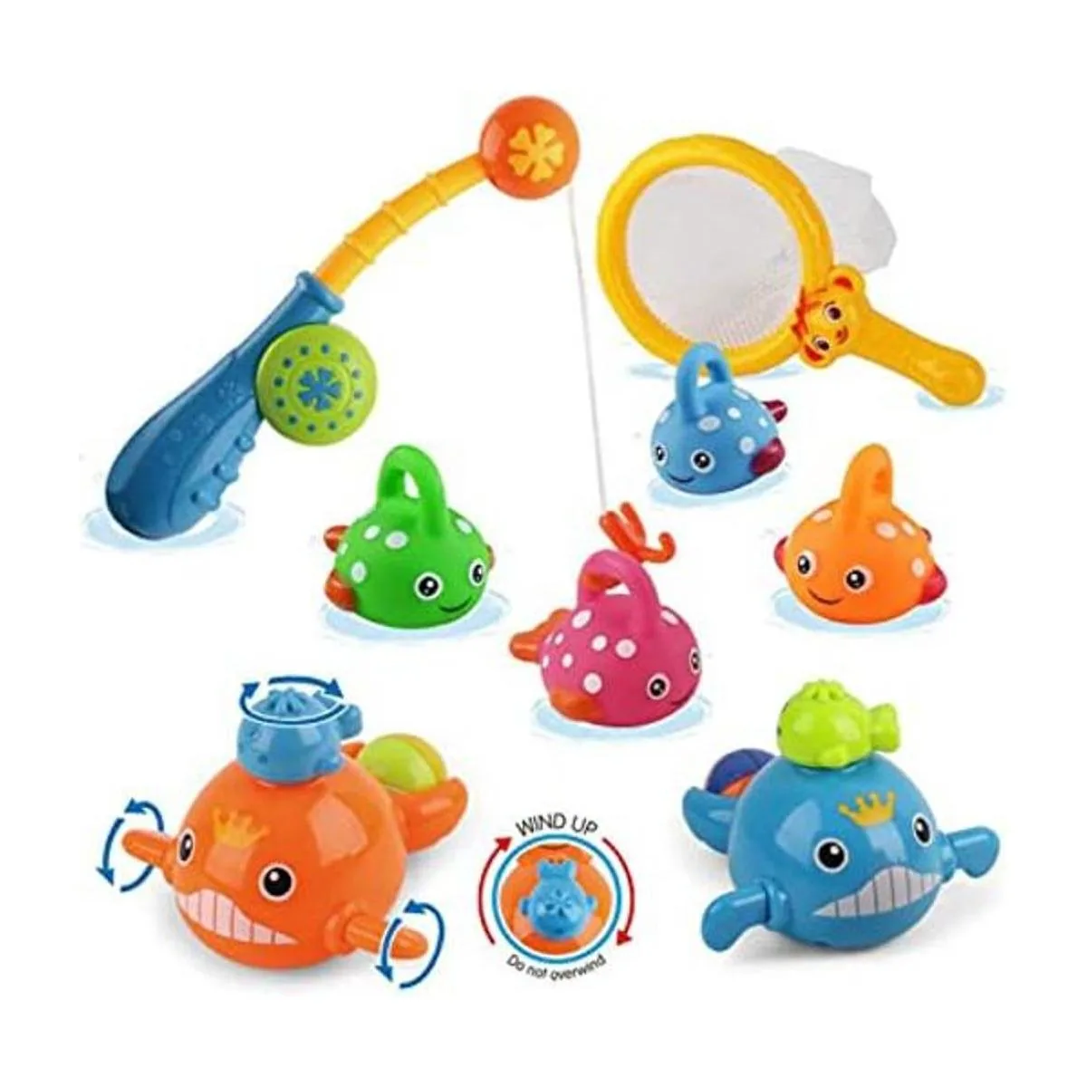 Ideal para jugar en cualquier lugar: Este juguete de baño para bebé es ideal para dentro o fuera del agua. Se puede jugar en la bañera, piscina, playa o en el suelo. Si el pez flotante es un desafío para tu bebé, entonces juega al juego de pesca en el suelo ahora y pesca en el agua en el futuro. El juego de juguetes de baño contiene: 1 caña de pescar, 1 red de pesca, 4 peces sin agujeros y 2 ballenas de natación. Adecuado para bebés a partir de 18 meses.