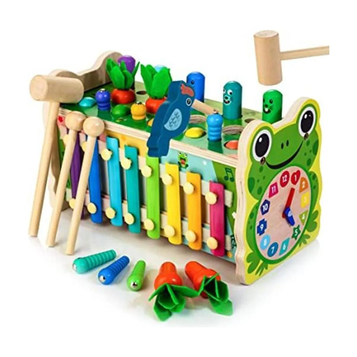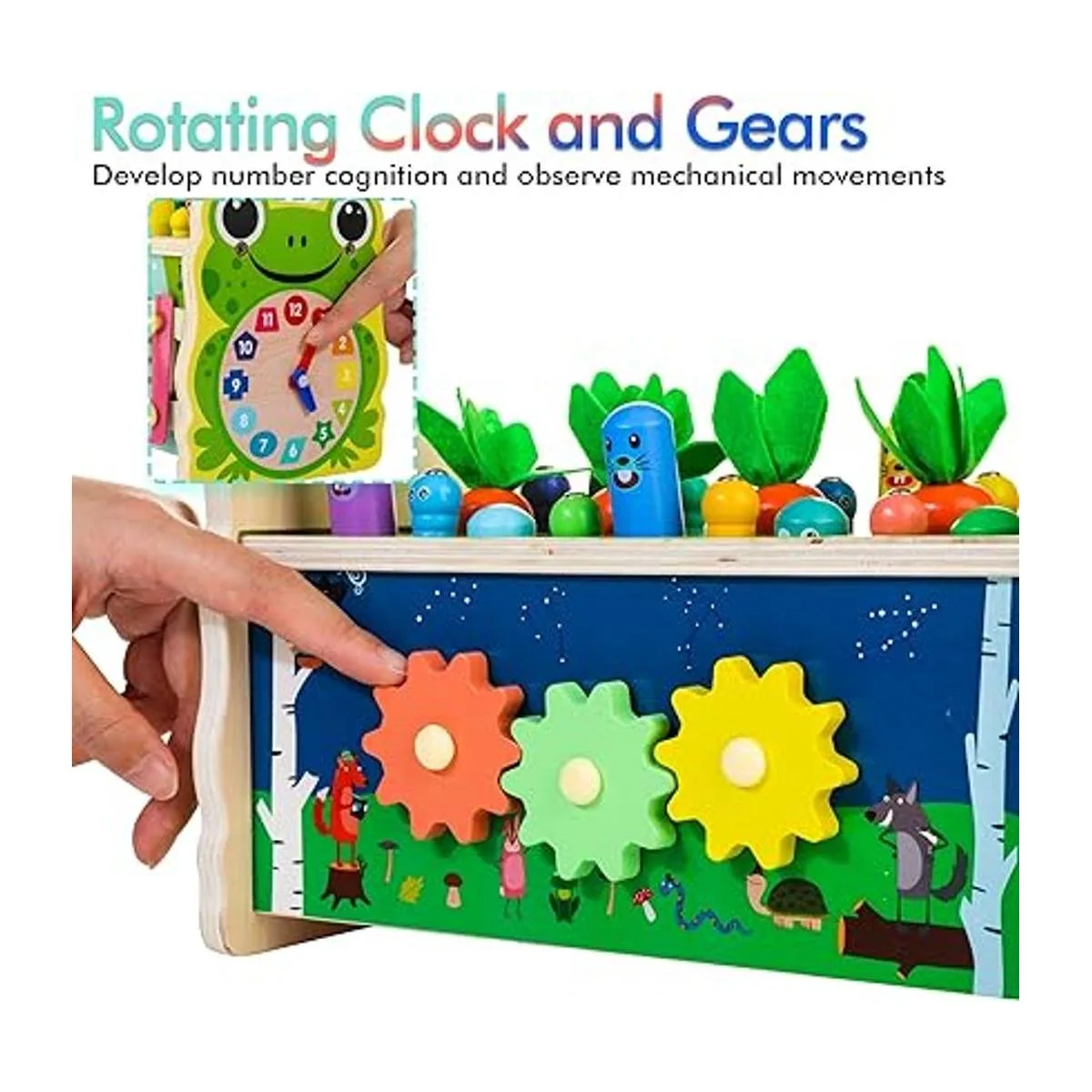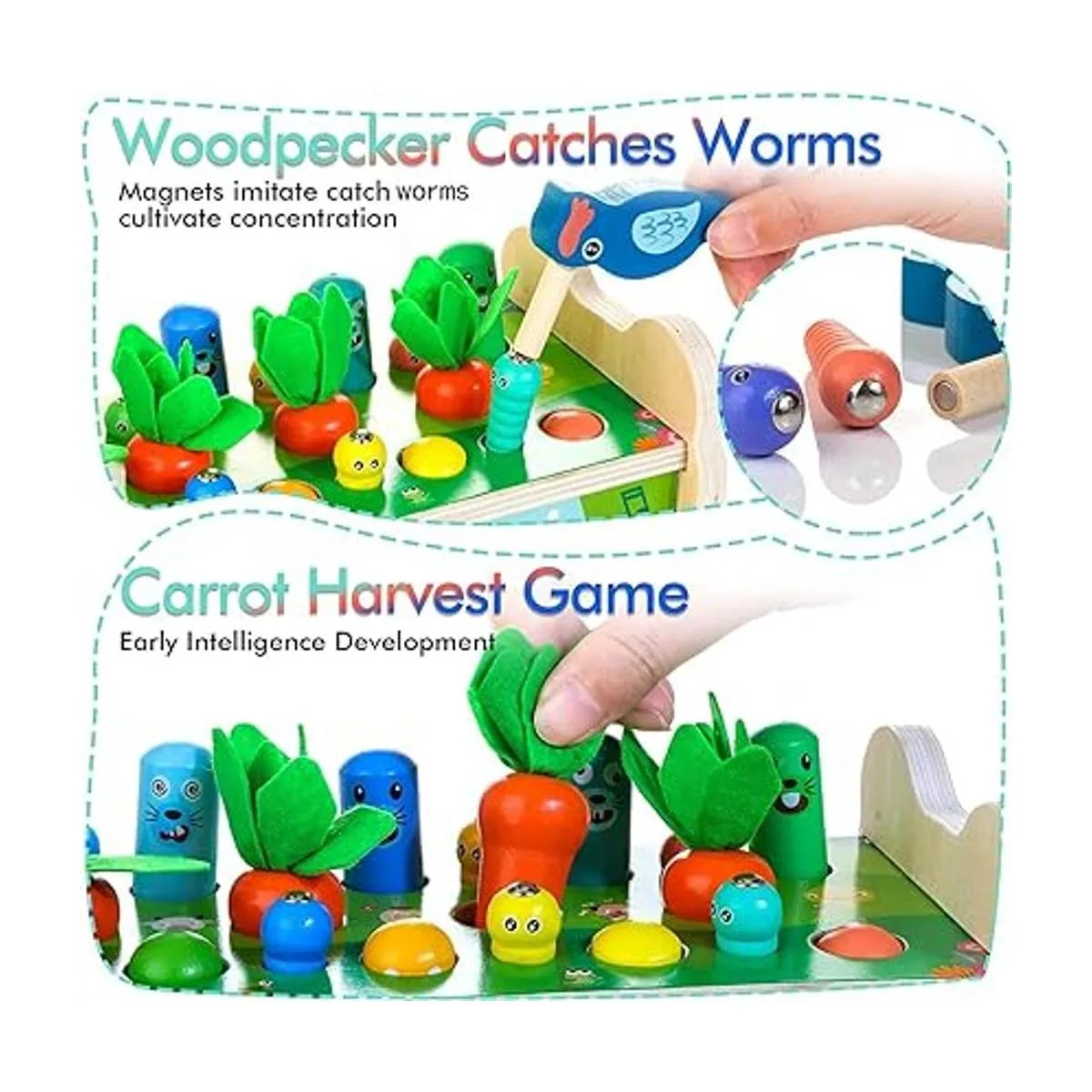 Juego de juguetes de madera 6 en 1: este juguete interactivo permite a tus hijos jugar 6 juegos en 1: golpear un topo, pájaro carpintero magnético atrapa gusanos, juego de cosecha de zanahorias, jugar al xilófono, cognición de números y tiempo, rotación de engranajes. Tu hijo estará súper sumergido en él y no se aburrirá, lo que ahorra dinero y resuelve dificultades de almacenamiento