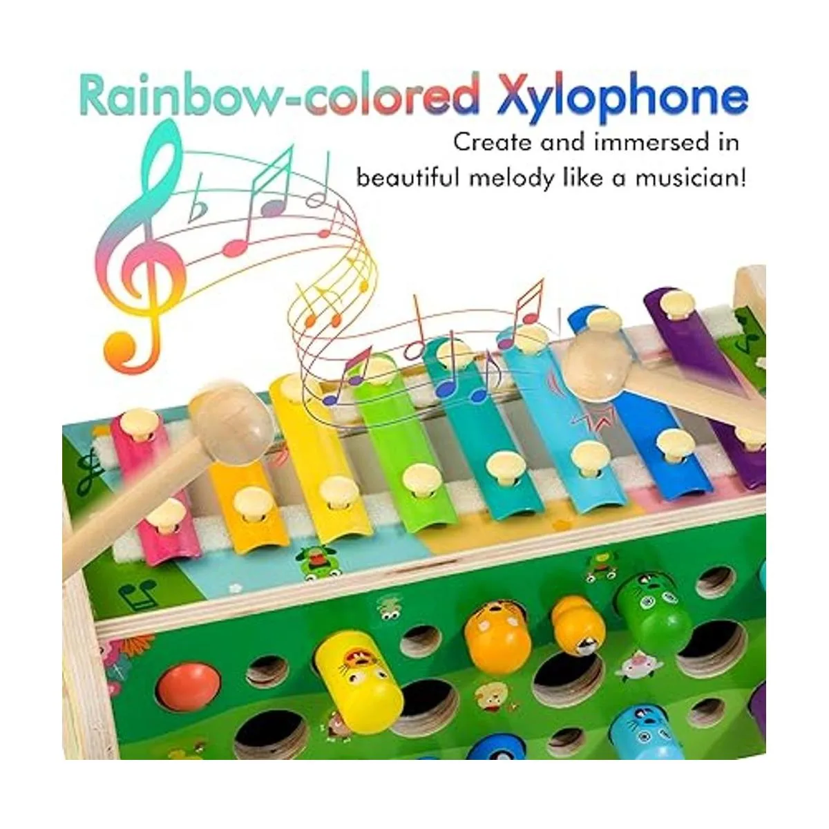 Juguetes Montessori de madera 6 en 1 para niños de 1 año Whack a Mole Game Martilling Pounding Toy con Xilófono Zanahoria Harvest Game Aprendizaje Juguetes de Desarrollo Actividades para niños pequeños, regalo de 1, 2, 3, 4 años