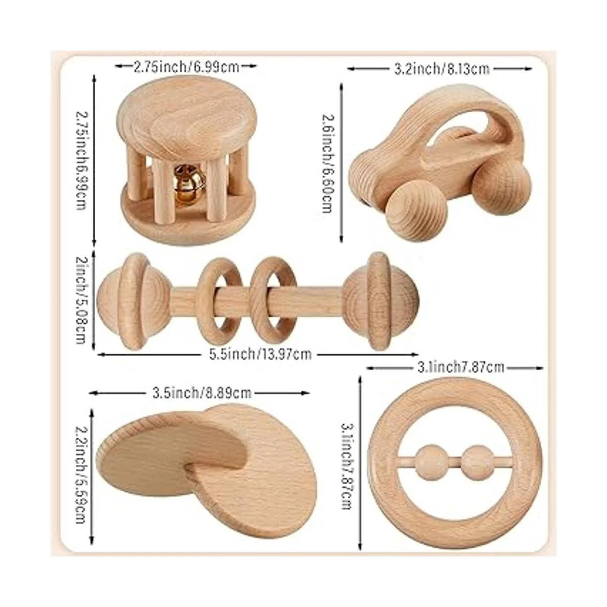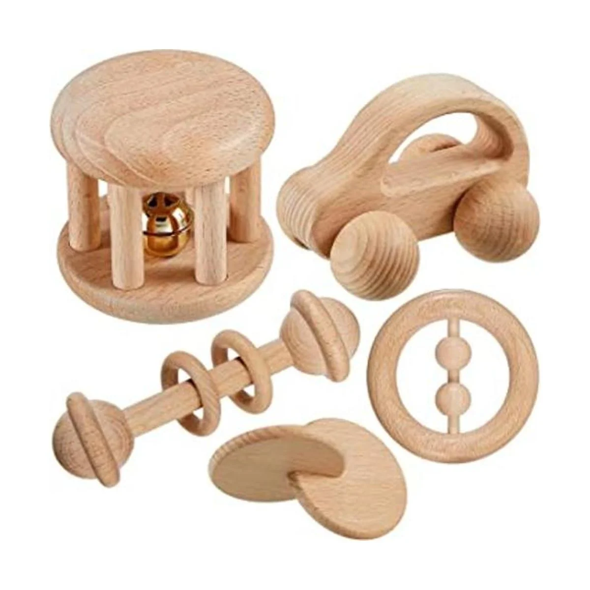 Contenido del paquete: recibirás 5 juguetes de madera, incluyendo sonajero de madera, disco entrelazado de madera Montessori y así sucesivamente, ayudando al bebé a crecer saludable y feliz