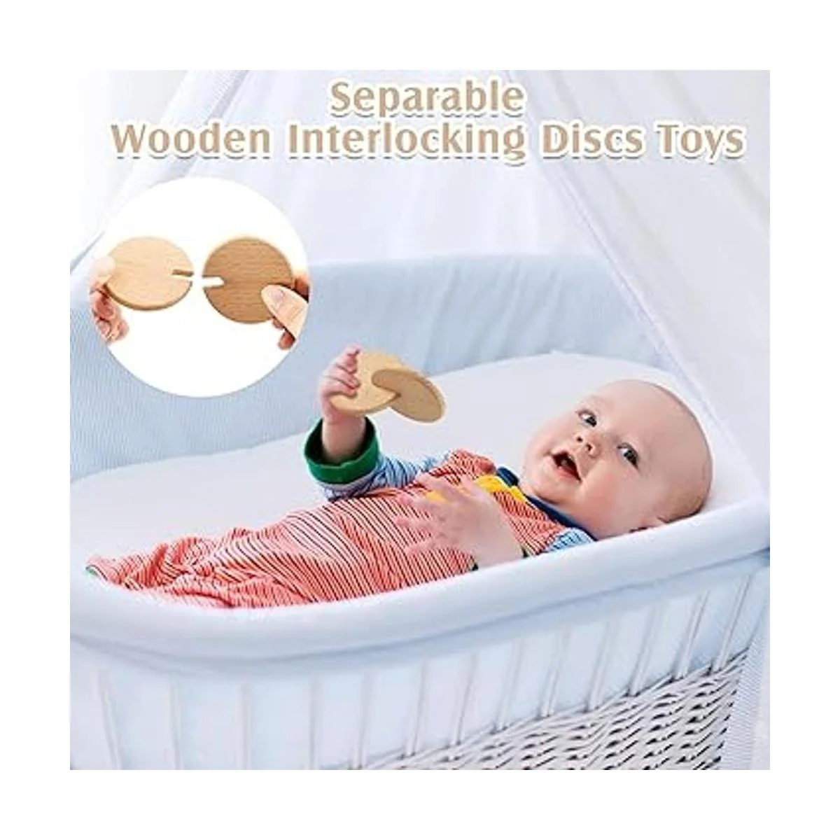 Diseño de bebé: los sonajeros para bebé tienen un diseño de tamaño de dedo de bebé, buen agarre y juguete de madera para bebés, considerado y útil, proporcionando una agradable sensación de juego; además, los juguetes de disco entrelazados están separados, los bebés pueden montarlos juntos para ejercitar la capacidad hecha a mano de tus bebés