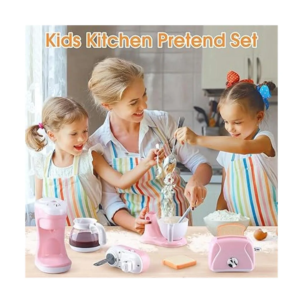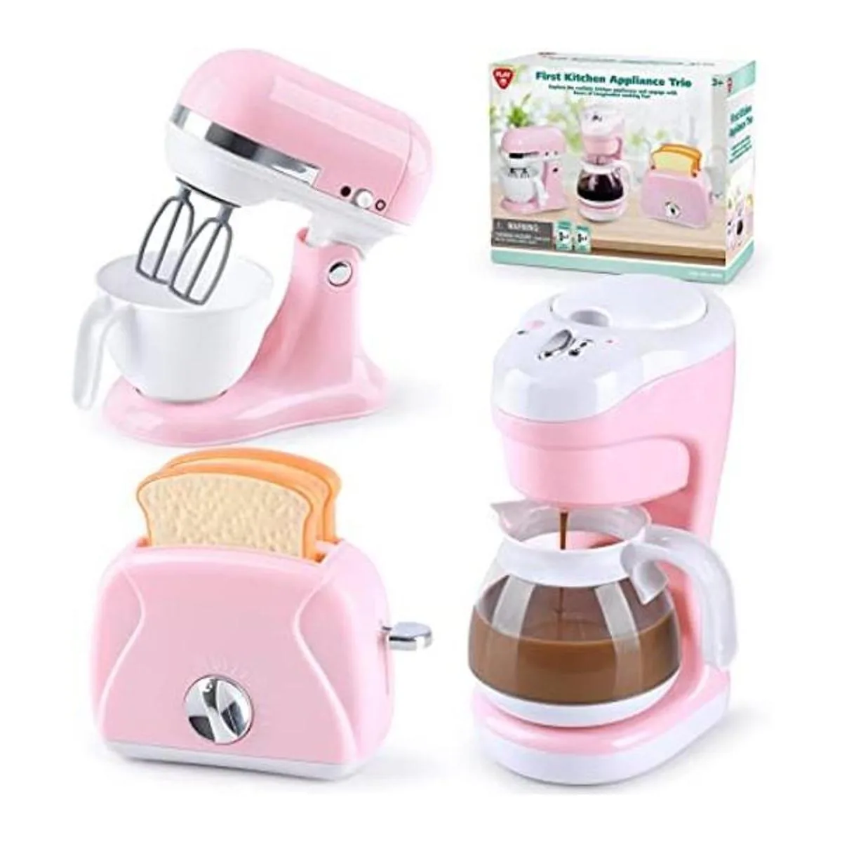 Juguetes para electrodomésticos de cocina, juego de accesorios de cocina para niños, juguetes de cocina para niños de 4 a 8 años, cafetera, batidora, tostadora que funciona, para niñas a partir de 3 años
