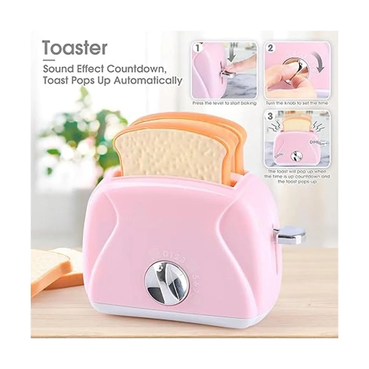 La tostadora tiene un temporizador, coloca la tostada en la tostadora, gira la perilla de tiempo y cuando el tiempo se agote, la tostada saldrá automáticamente como una tostadora real.