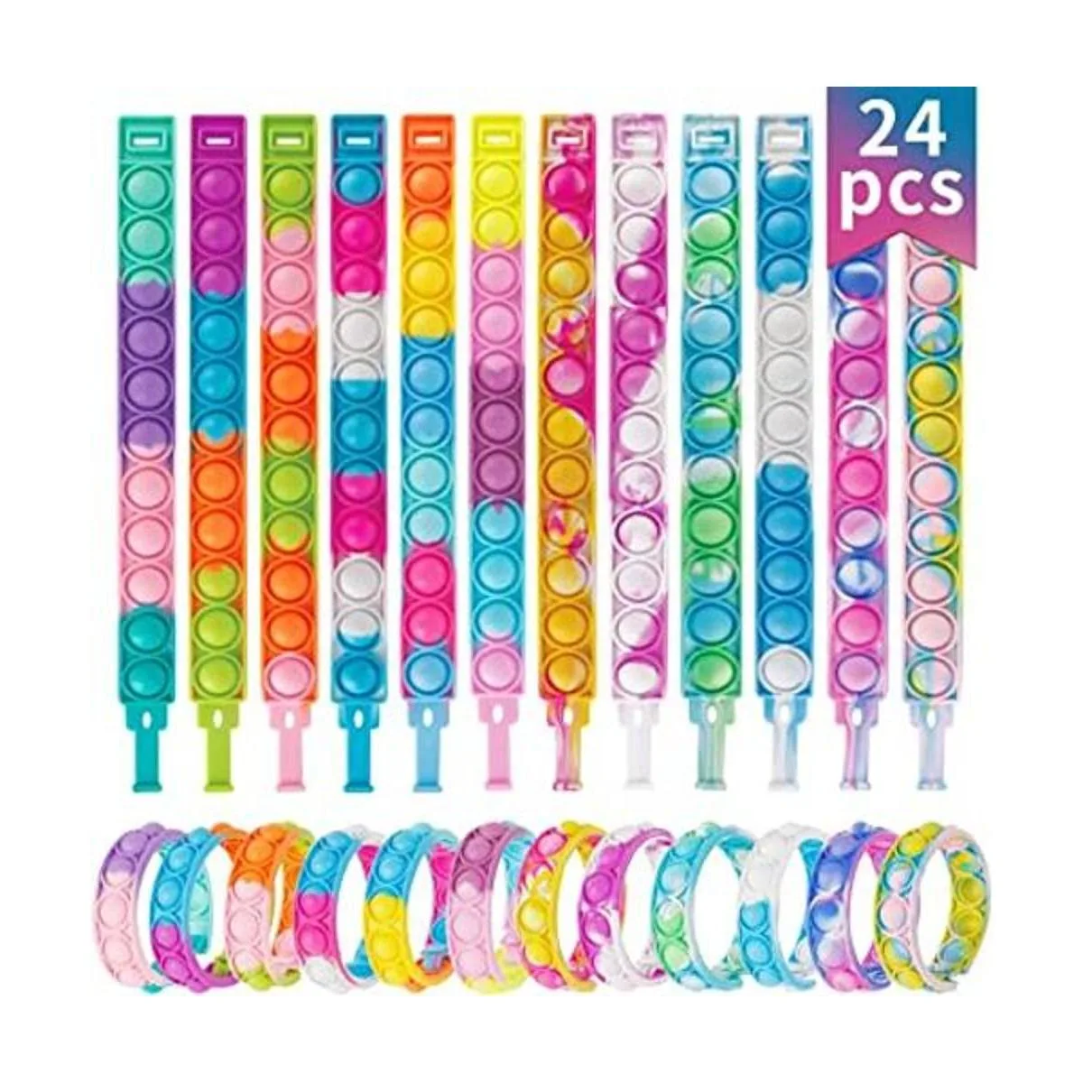 Juguetes para la ansiedad, juguetes para la ansiedad, juguetes para niños, 24 unidades, pulseras para reventar, paquetes de juguetes para niños pequeños, suministros de fiesta, premios de aula, rellenos de calcetines, juguetes sensoriales para bebés, juguetes sensoriales para niñas y niños