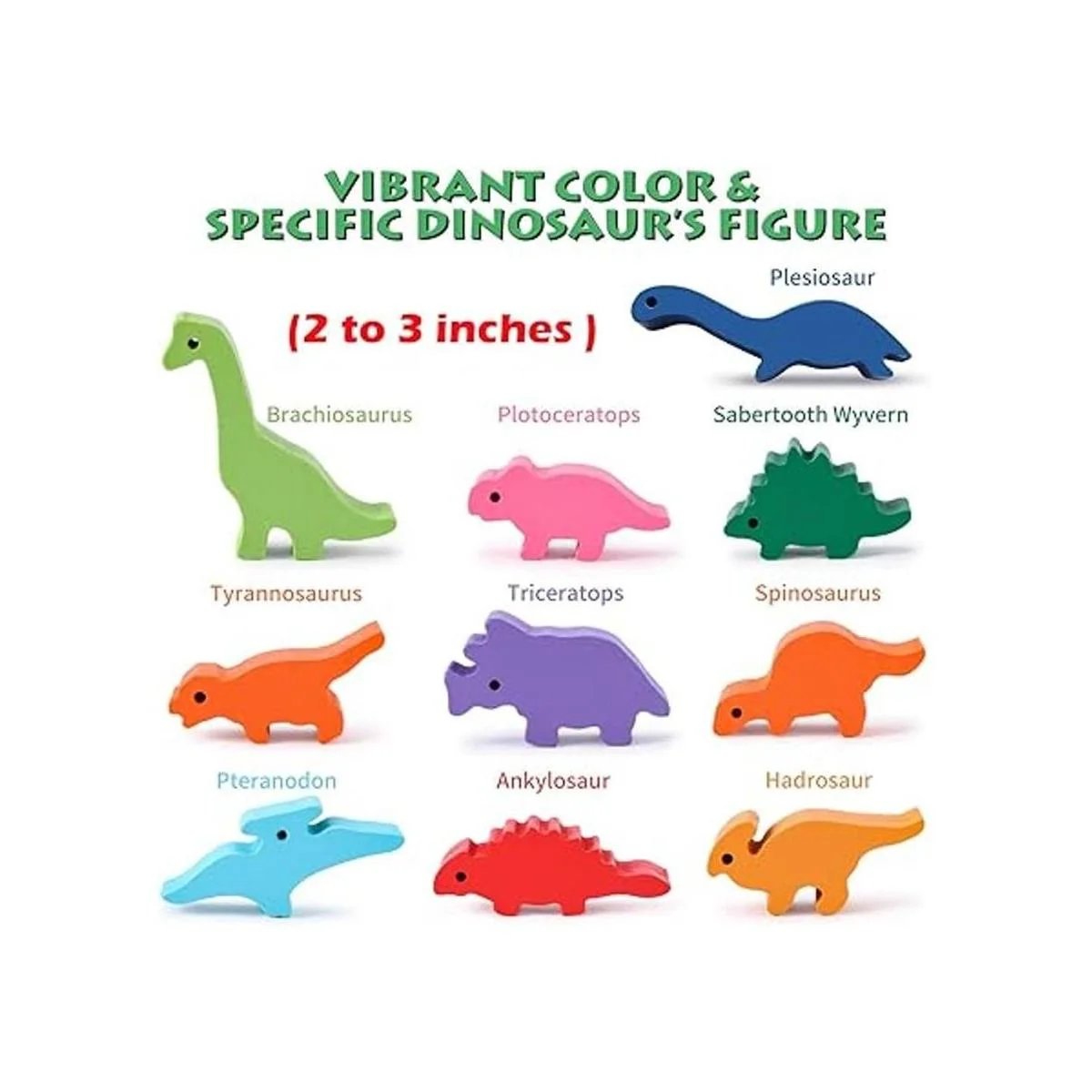 Bloques vibrantes de dinosaurios de madera: este juguete apilable está diseñado para niños de 3 a 5 años. Cada pieza de bloque de madera es una figura específica de dinosaurio, muy llamativa y perfecta para la clasificación de colores y juego a juego, así como para el juego imaginativo. Apilar los bloques también ayuda a mantener las manos de los niños ocupadas y estimular el desarrollo cerebral.
