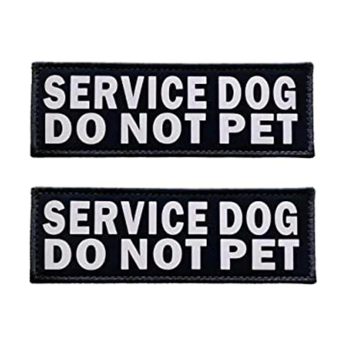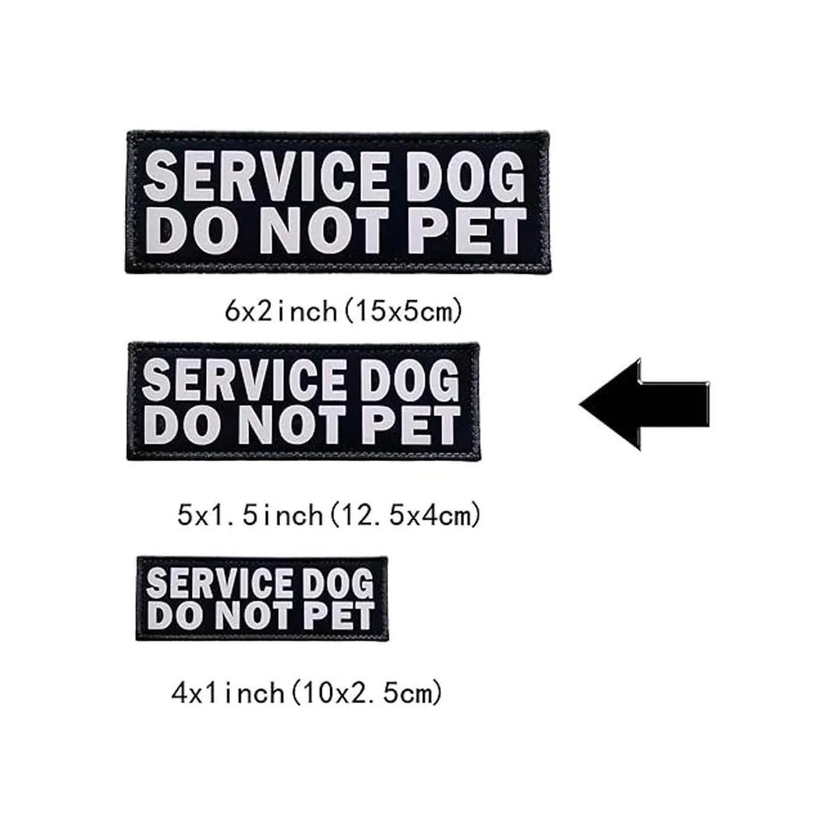 JUJUPUPS Parches reflectantes negros para perros, paquete de 2 unidades, en entrenamiento, no mascotas, etiquetas con parches de gancho y bucle para chalecos y arneses perro de servicio, no se mascotas, 5 x 1.5 pulgadas