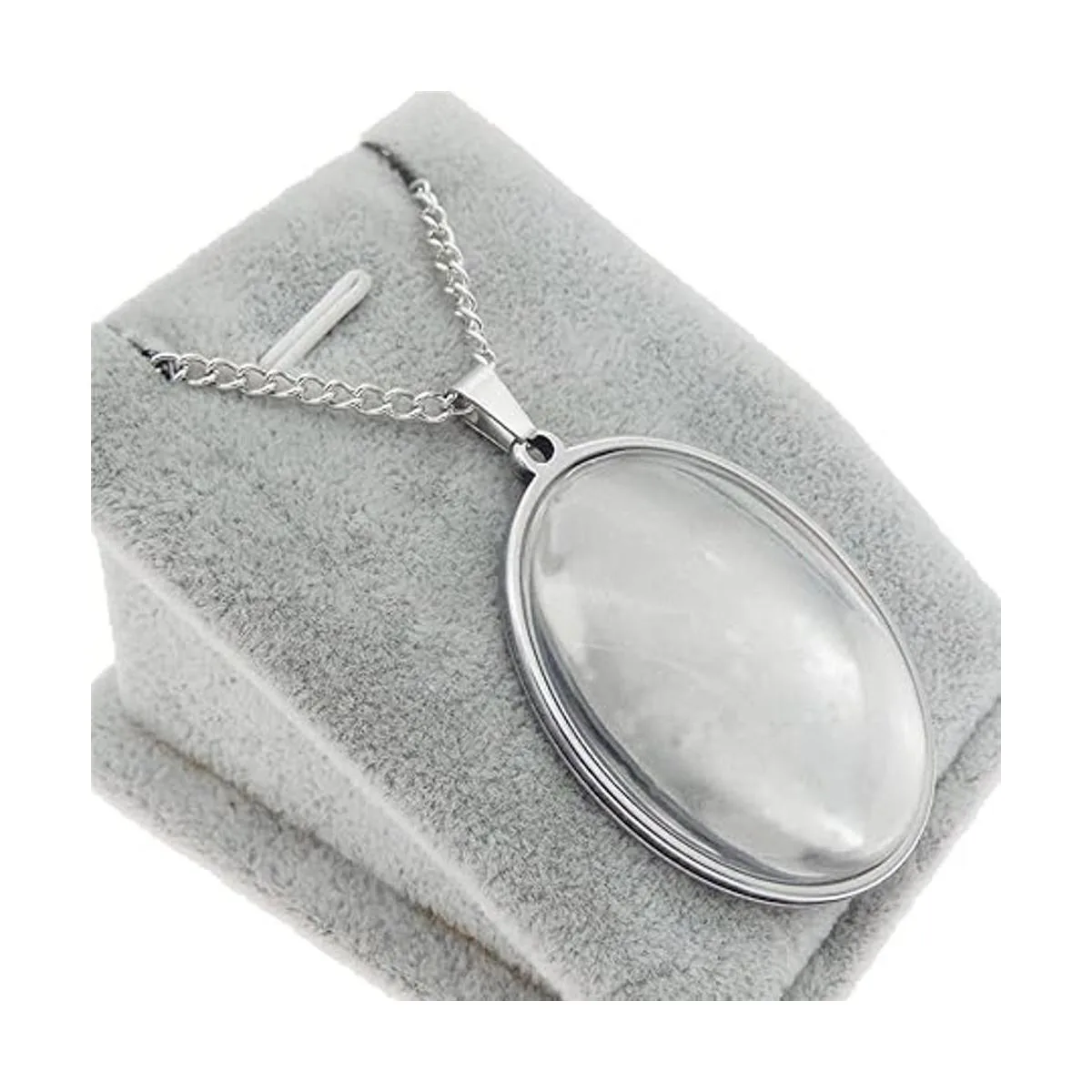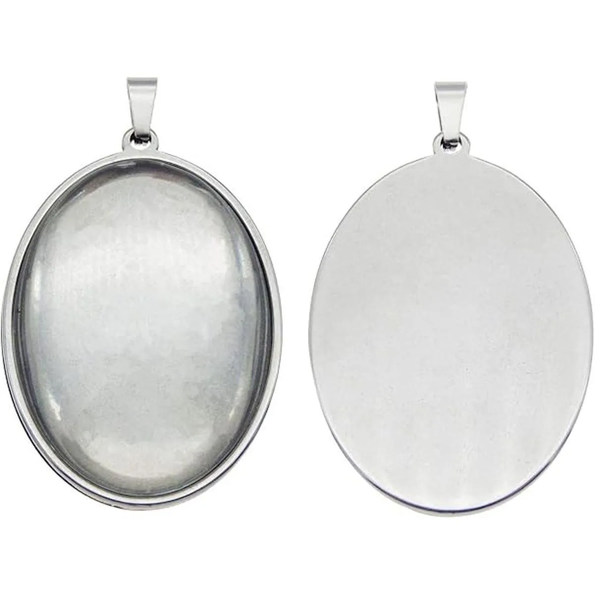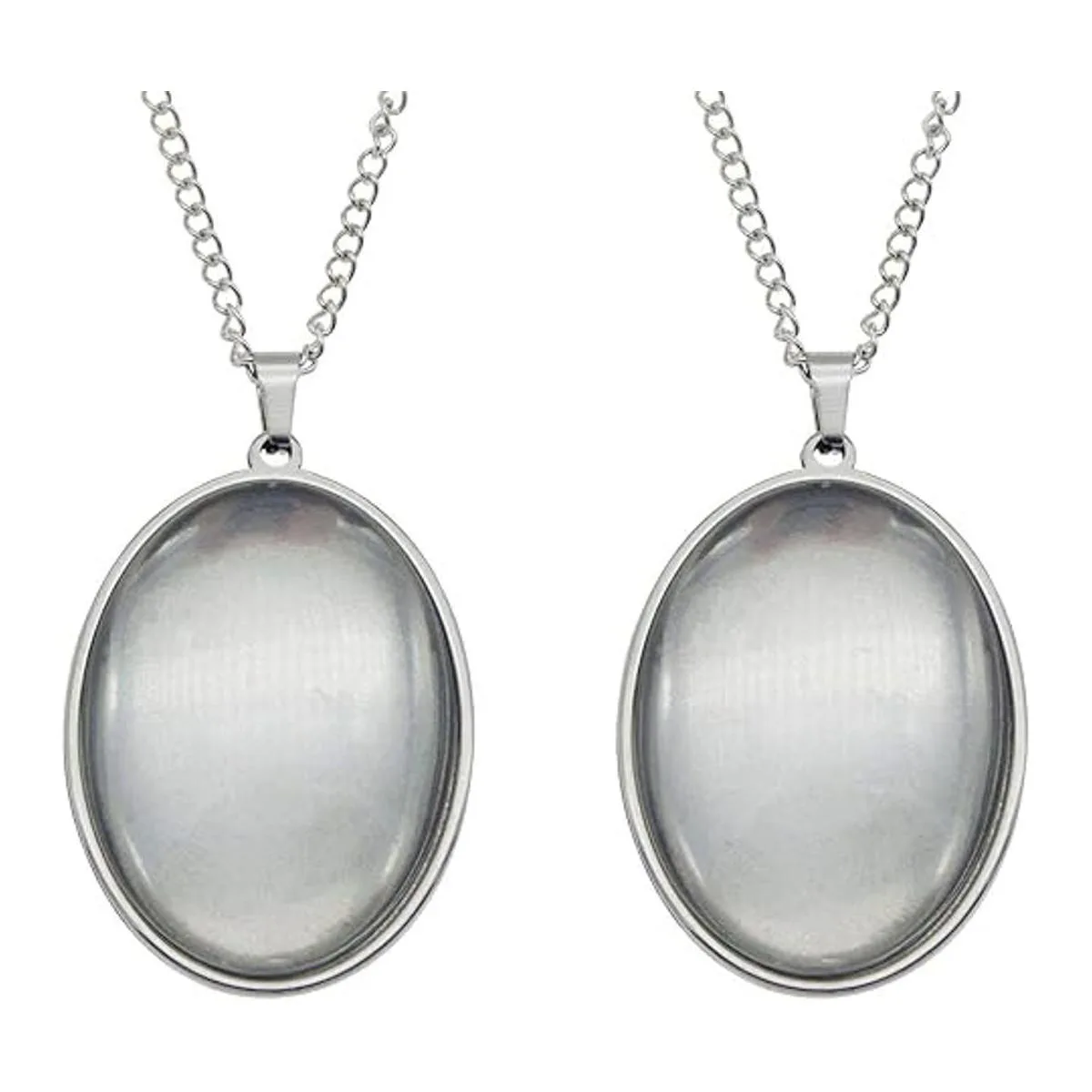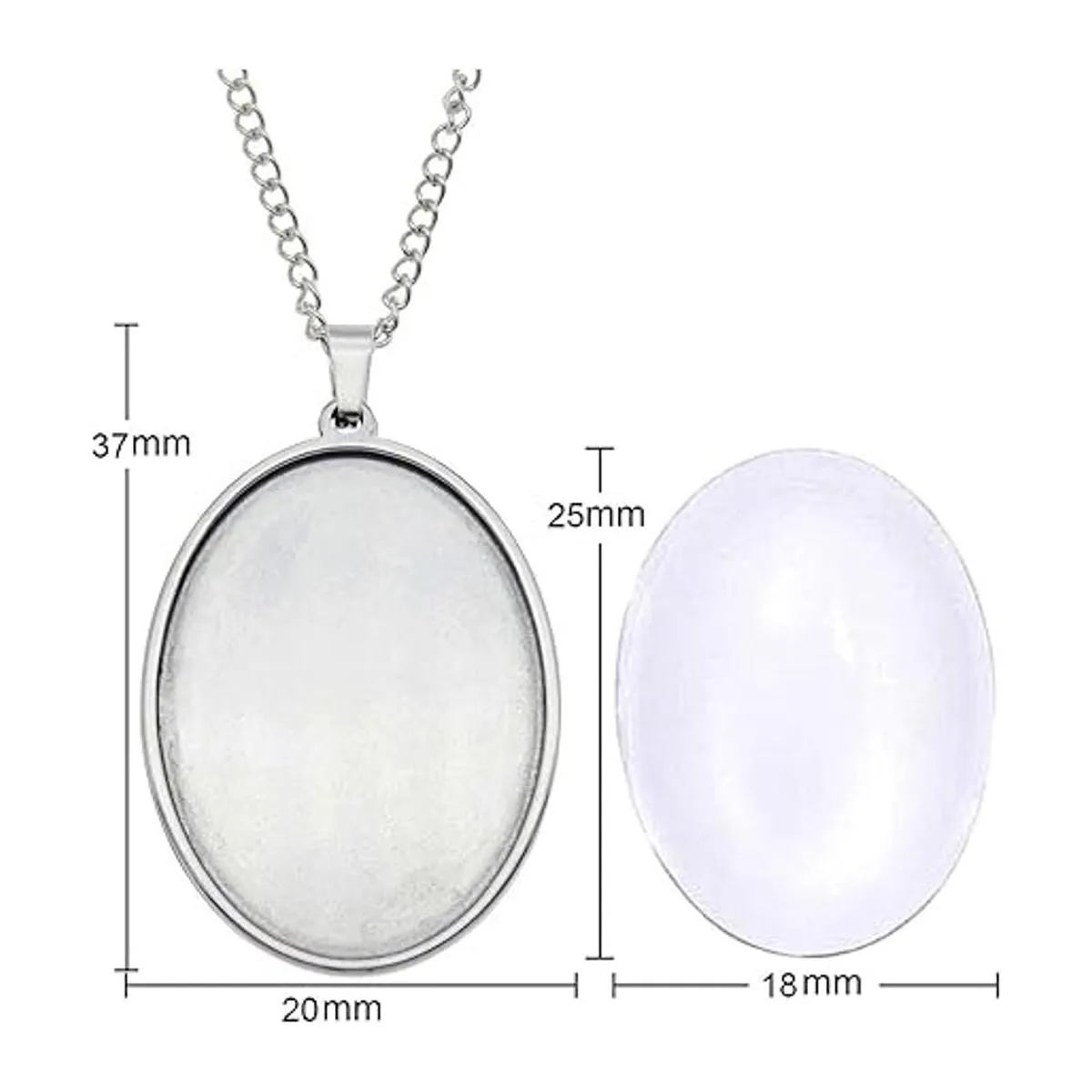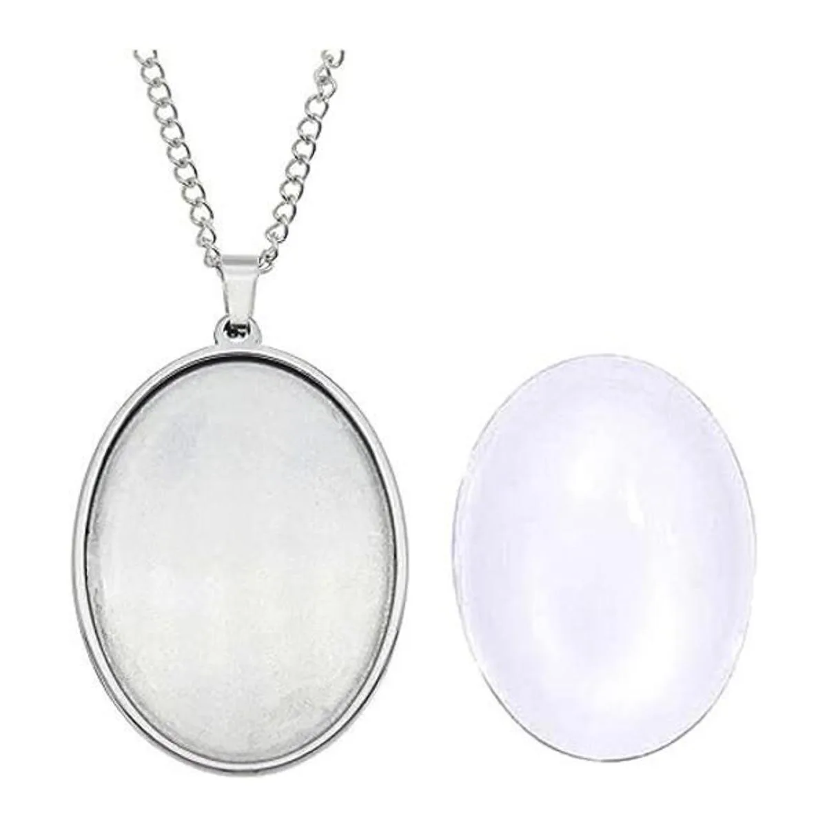 Julie Wang 10 juegos de colgante de bandeja de bisel de acero inoxidable con cabujones de vidrio y cadena para resina foto de joyería, collar ovalado de 0.984 x 0.709 in
