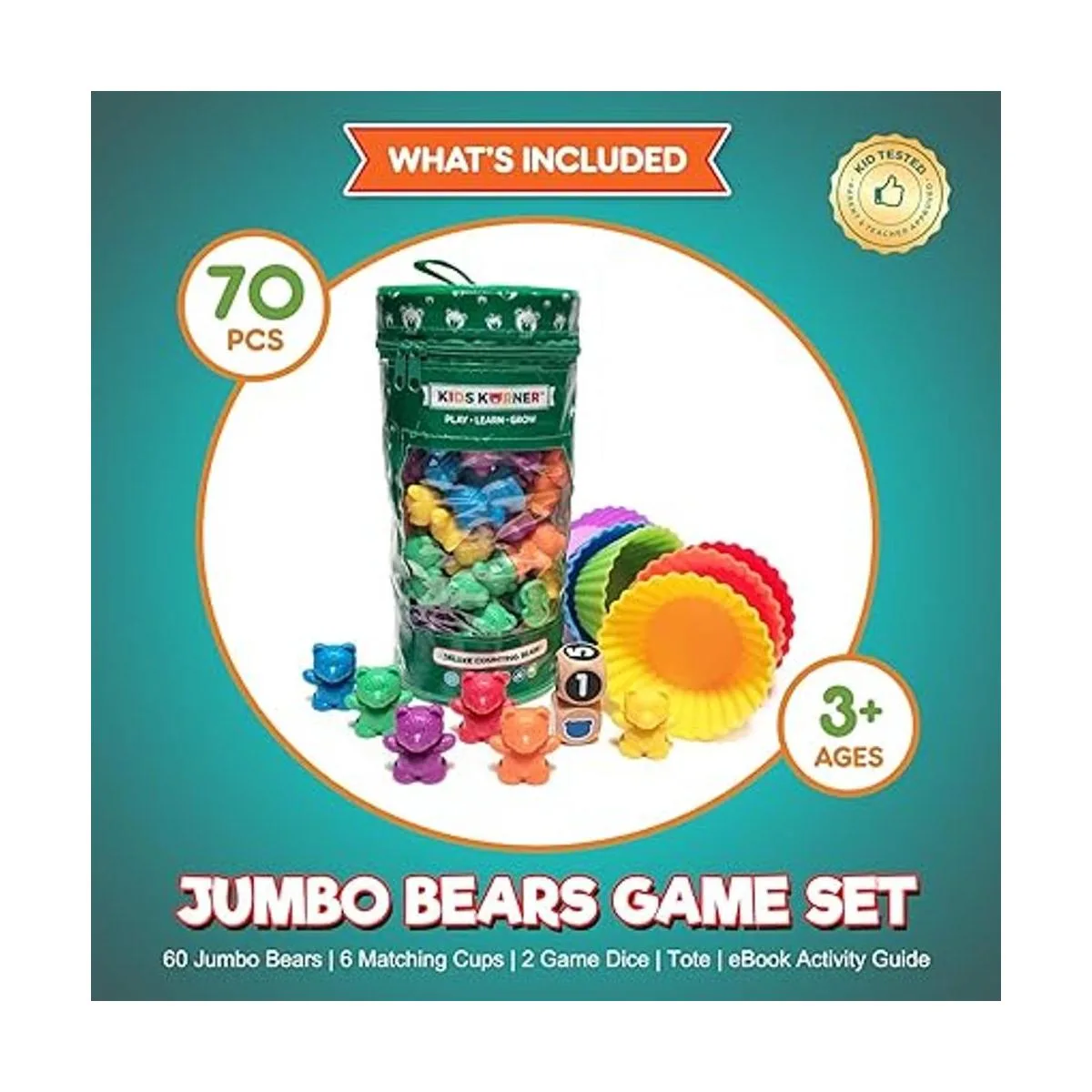 Jumbo Counting Bears Matching Game Montessori Fine Motor Learning Toys for 2 Year Olds with Stacking Cups, 60 Preschool Math Manipulatives, 2 Toddler Games Dice, Toy Storage Activities eBook