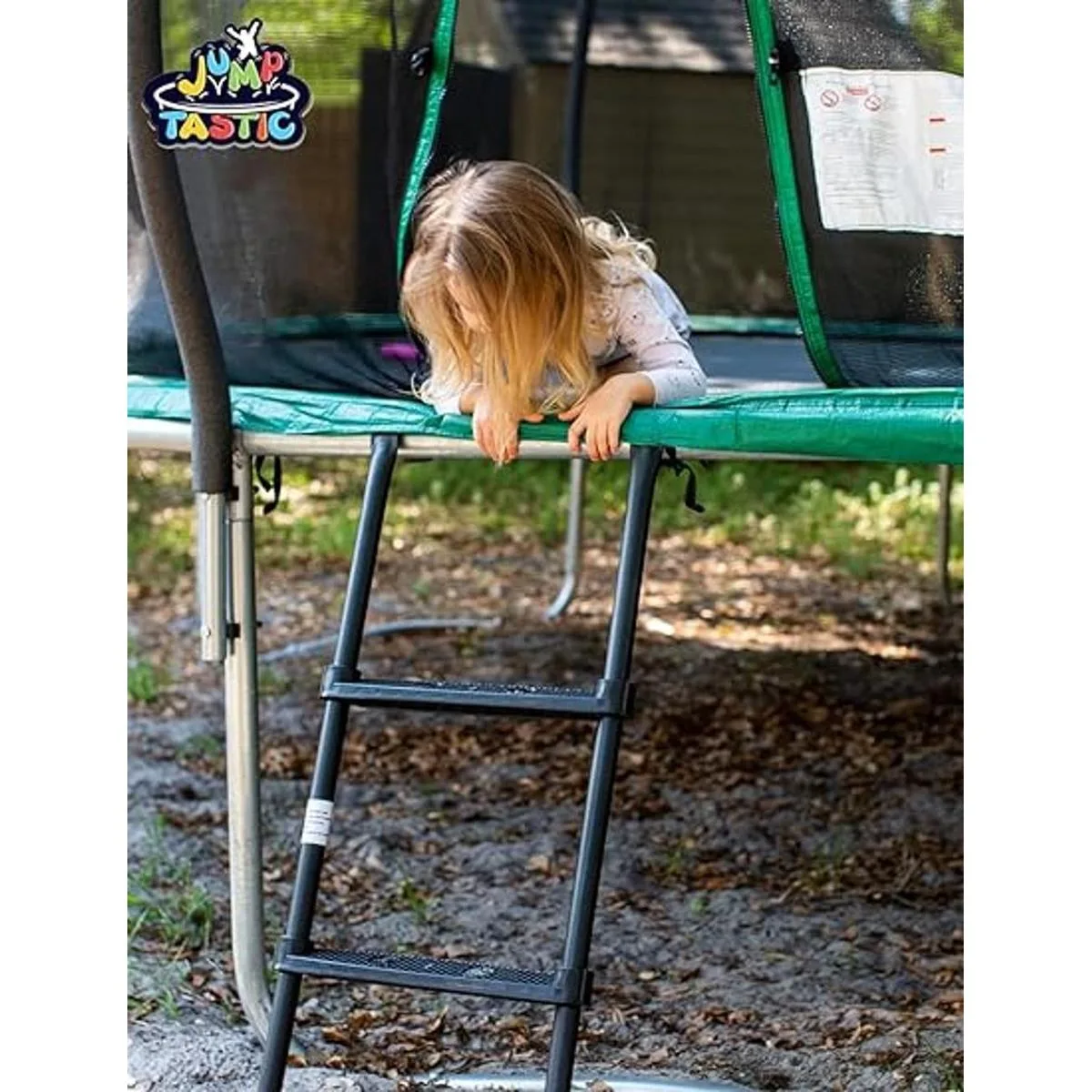JumpTastic Escalera de cama elástica, accesorios de escalera de trampolín universal, escalera de 3 escalones, antideslizante, escalón ancho, fácil de montar