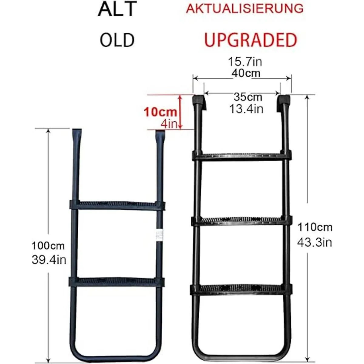 Diseño universal: la altura total de la escalera es de 43.3 pulgadas, se adapta a camas elásticas de 10 pies, 12 pies, 14 pies, 15 pies y todos los tamaños de camas elásticas, la altura entre escalones es de 10.5 pulgadas, es fácil y seguro para los niños subir y bajar de las camas elásticas sin ayuda