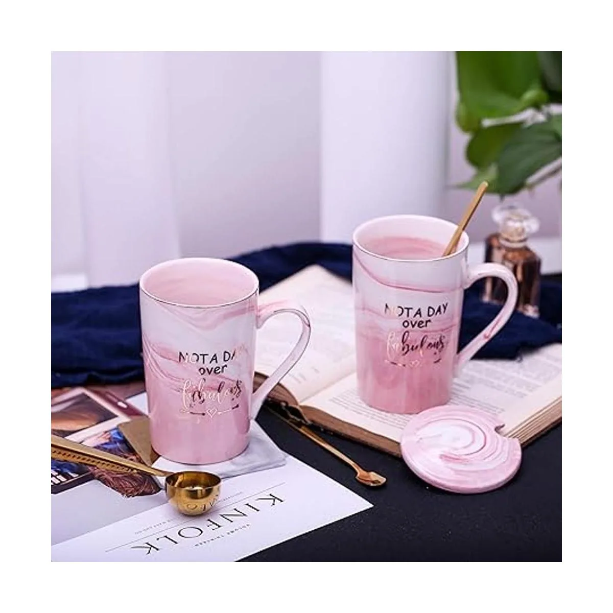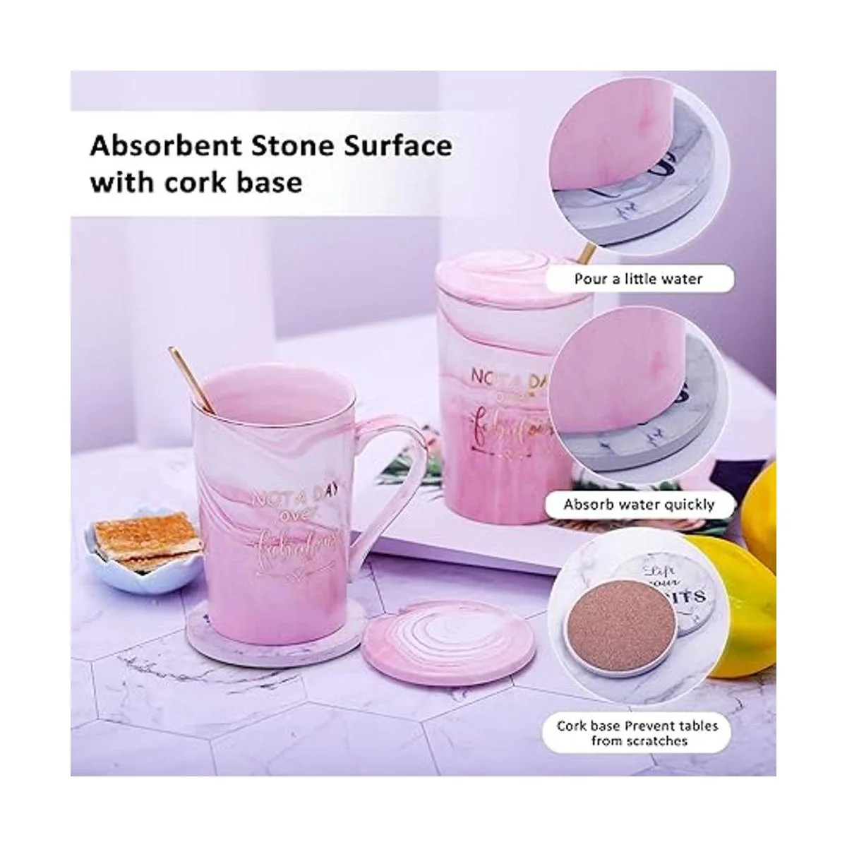 Jumway Taza Not A Day Over Fabulous Regalos de cumpleaños para mujeres, ideas divertidas de regalos de cumpleaños para ella, amigos, compañeros de trabajo, ella, esposa, madre, hija, hermana, tía, taza de cerámica de mármol de 14 onzas, rosa
