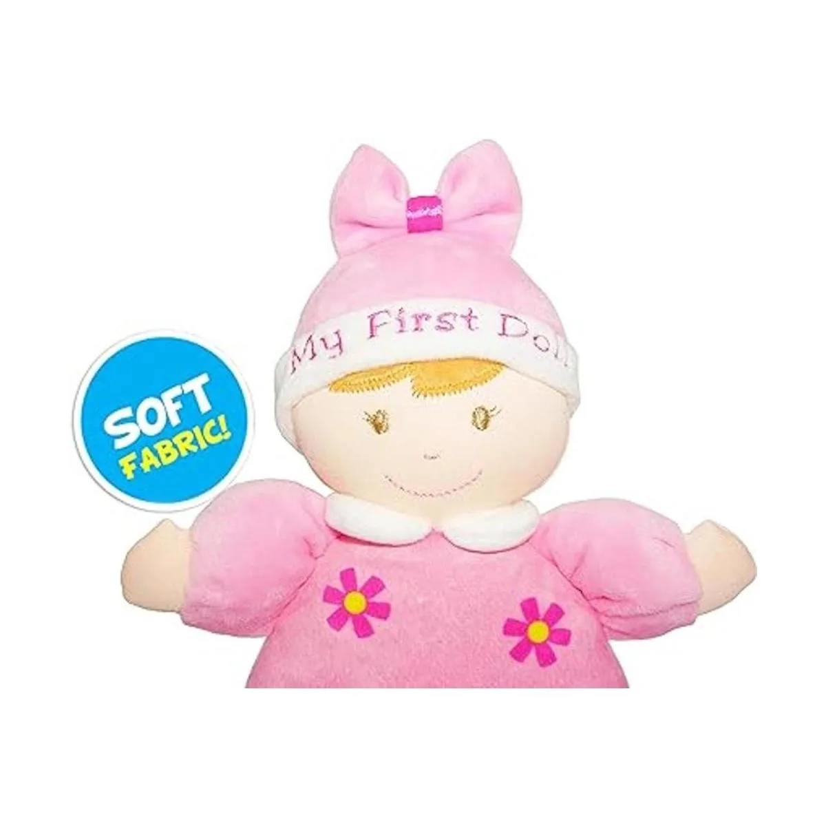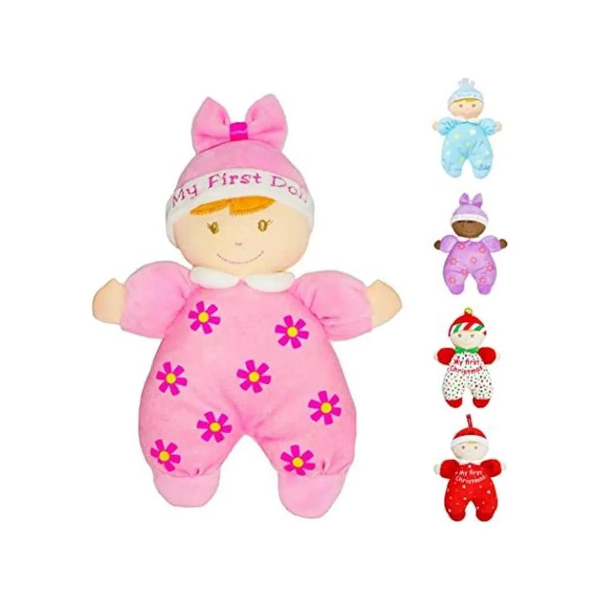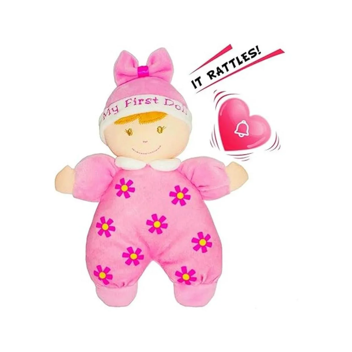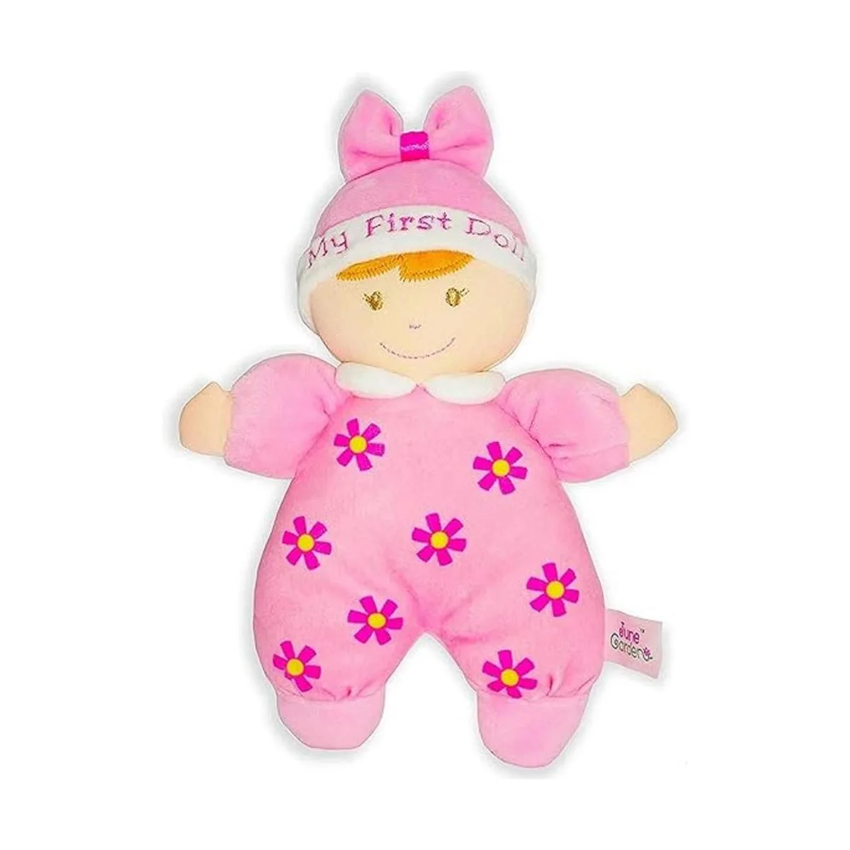 June Garden 9 My First Doll Sophia Muñeca de bebé de felpa suave con sonajero, traje rosa
