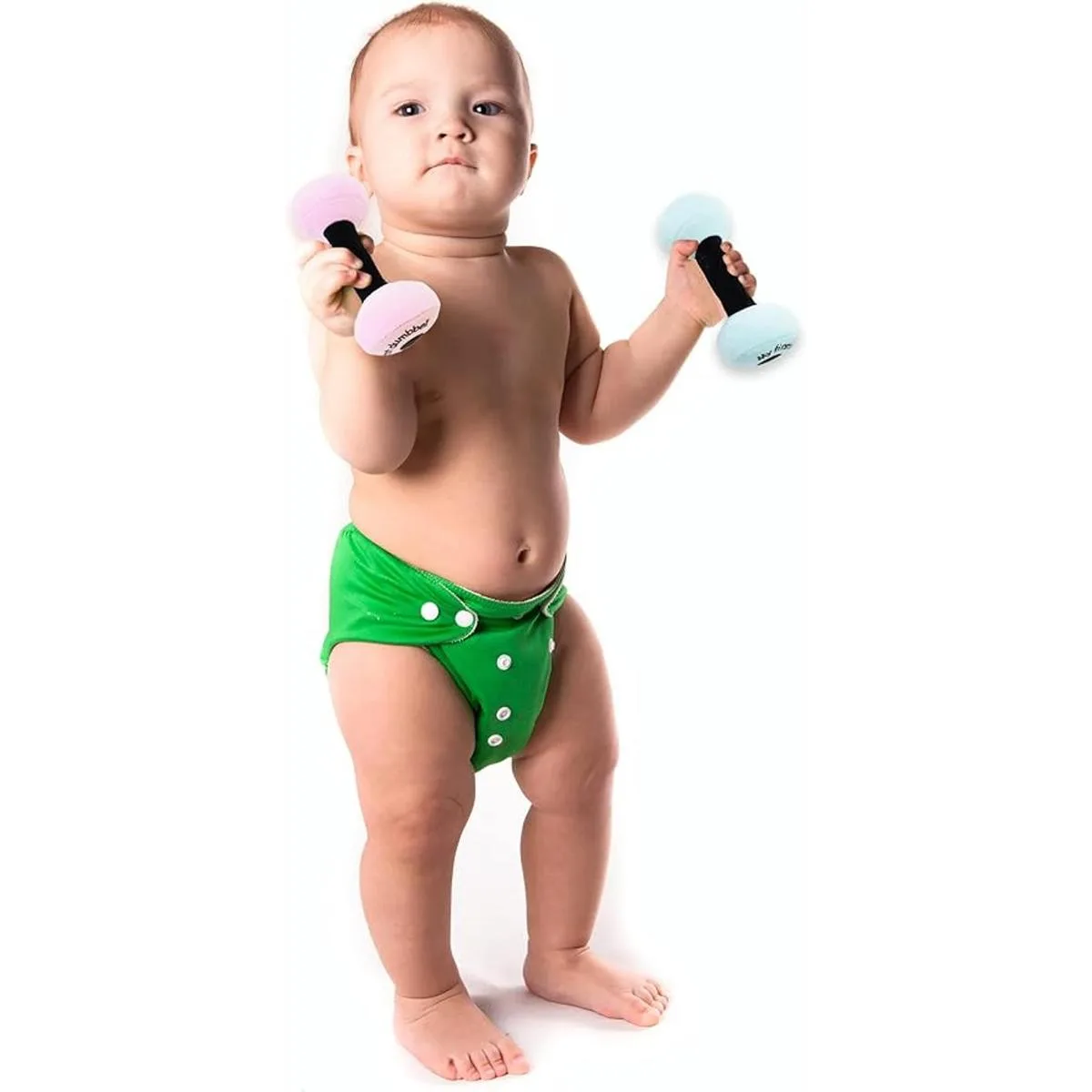 Diseño cuidadoso: las mancuernas son fáciles de agarrar y sostener, adaptadas para las manos pequeñas del bebé. Tamaño perfecto para que tus bebés o niños pequeños lo lleven en interiores mientras estás en casa o fuera. Lavable a máquina.