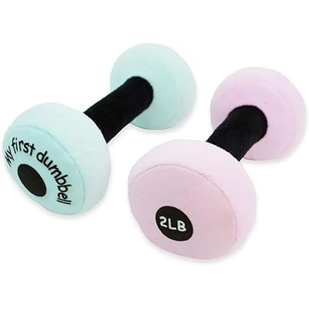 Seguro para niños: el material de la tela es de felpa ultra suave de alta calidad. Los juguetes de mancuernas están hechos a mano y no tienen partes afiladas que puedan causar un peligro. Las mancuernas suaves de felpa son 100 seguras para tu bebé recién nacido, bebé o niño pequeño.