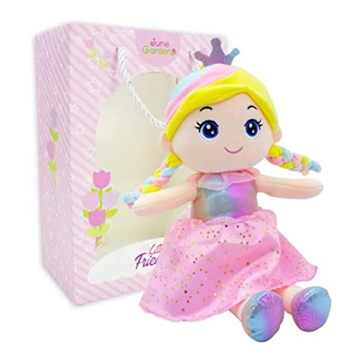 June Garden Muñeca de bebé suave Vera de 14 pulgadas, regalos de peluche de princesa para niñas, color rosa con bolsa de regalo