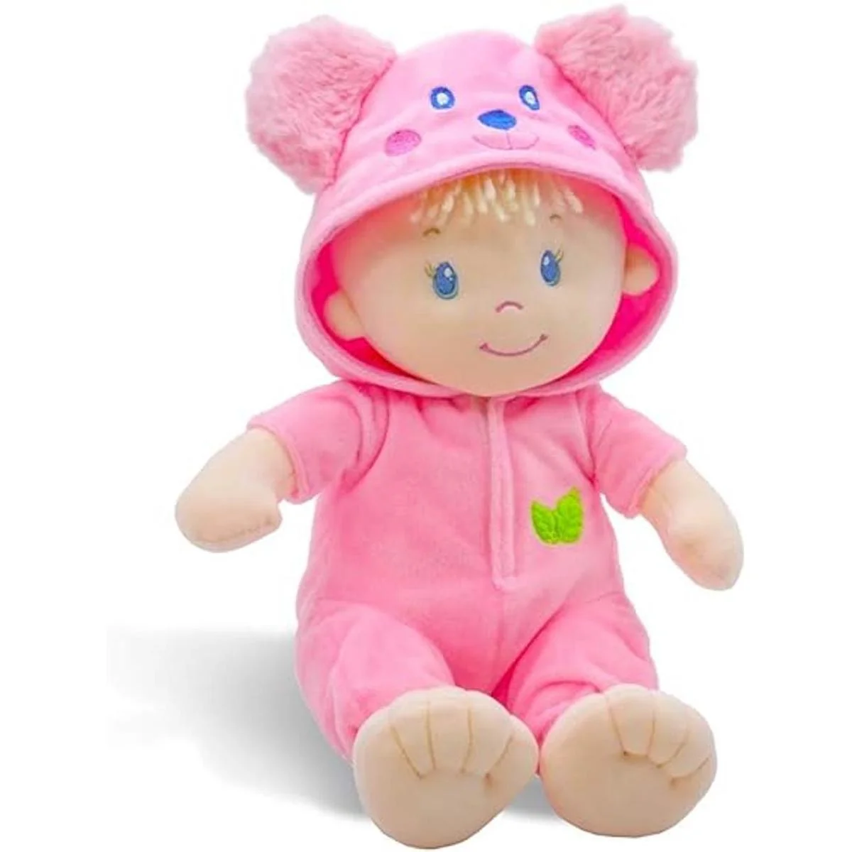 June Garden Sweet Dolly Frida de 12 pulgadas, muñeca de oso de bebé ultra suave para nacimiento y más, atuendo rosa extraíble