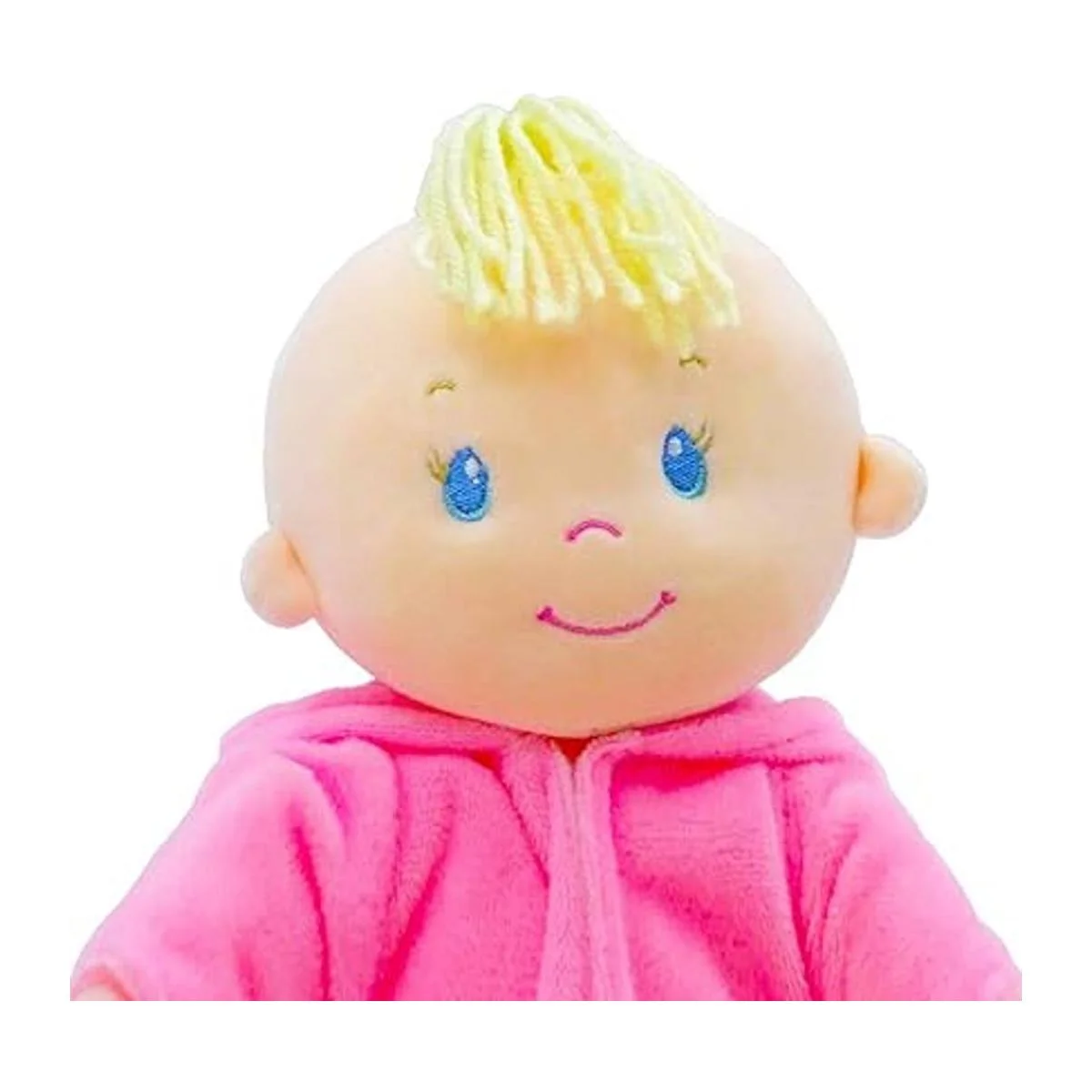Adorables detalles de muñeca suave: con bonito pelo rubio, Frida tiene una bonita cara de bebé con ojos azules brillantes bordados. Su cuerpo está hecho de felpa ultrasuave, lo que la hace abrazable y segura como la primera muñeca del bebé.