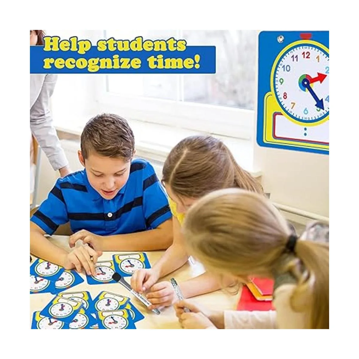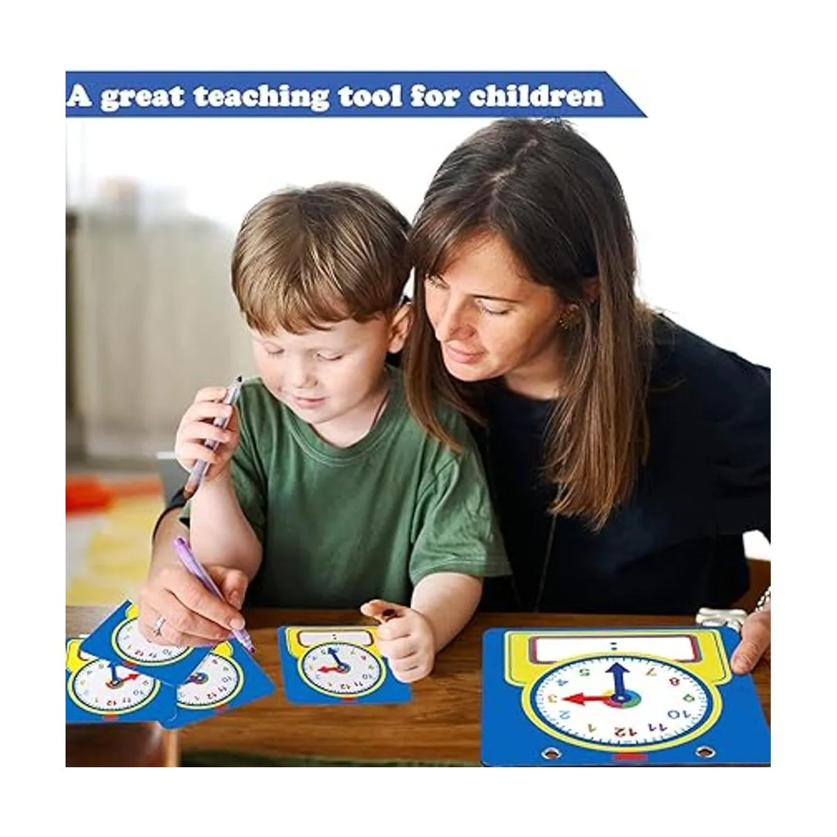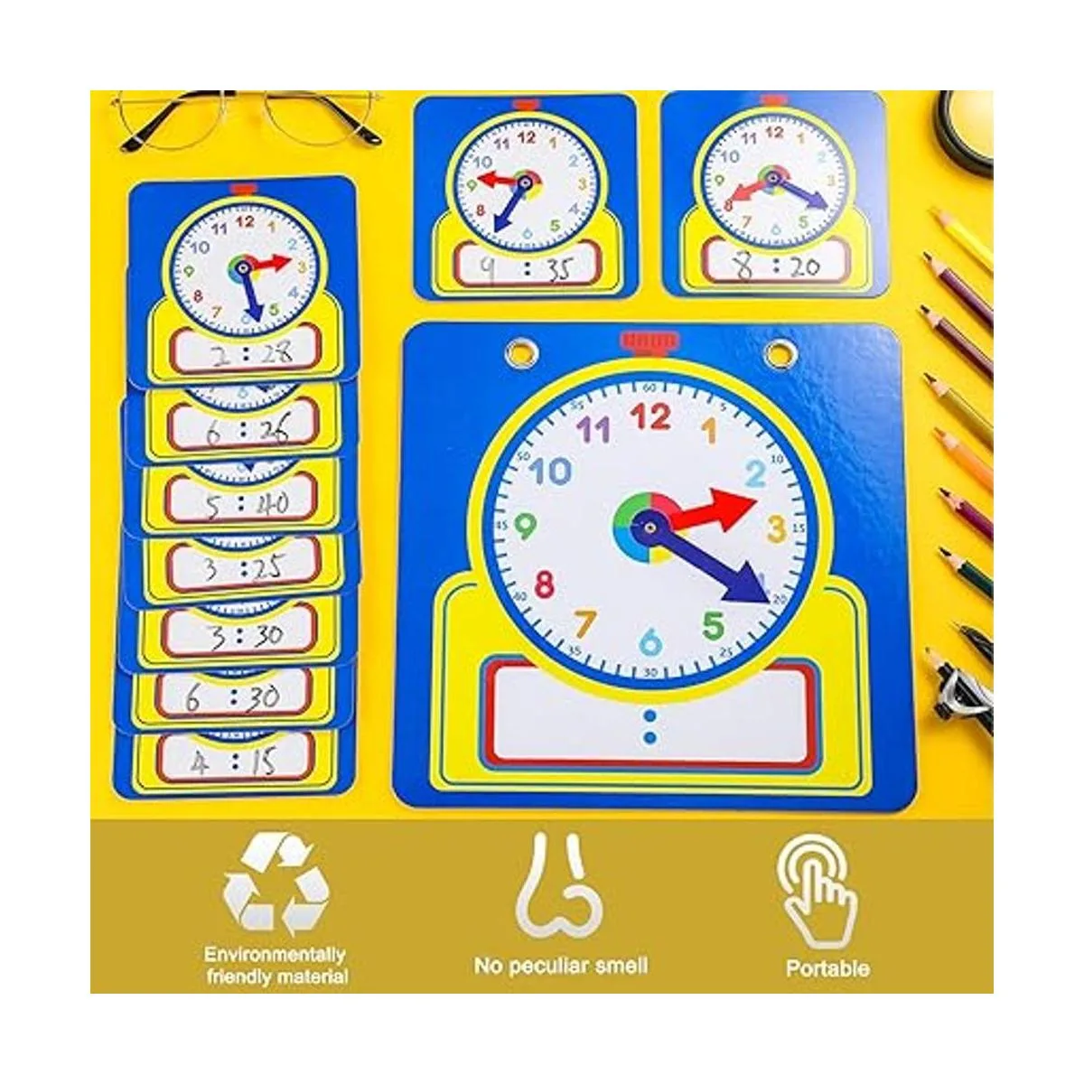 Junkin Kit de reloj de enseñanza de 25 piezas, relojes de práctica para niños, tiempo de aprendizaje con superficie borrable para suministros de aula escolares en el hogar estilo lindo