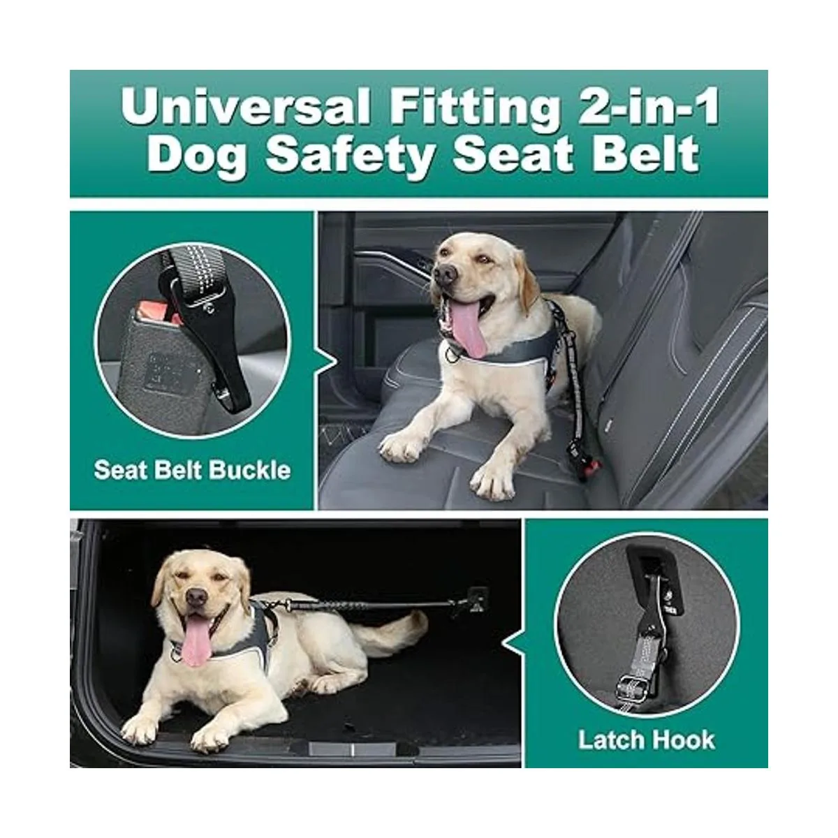 Arnés multifuncional de 3 generación: este cinturón de seguridad humanizado para perro con hebillas de metal resistentes y clip de metal envuelto por una funda protectora suave para proteger la pierna de tu perro, no solo se engancha a la barra de pestillo del vehículo, sino también la hebilla del cinturón de seguridad del coche.
