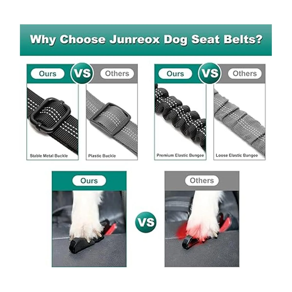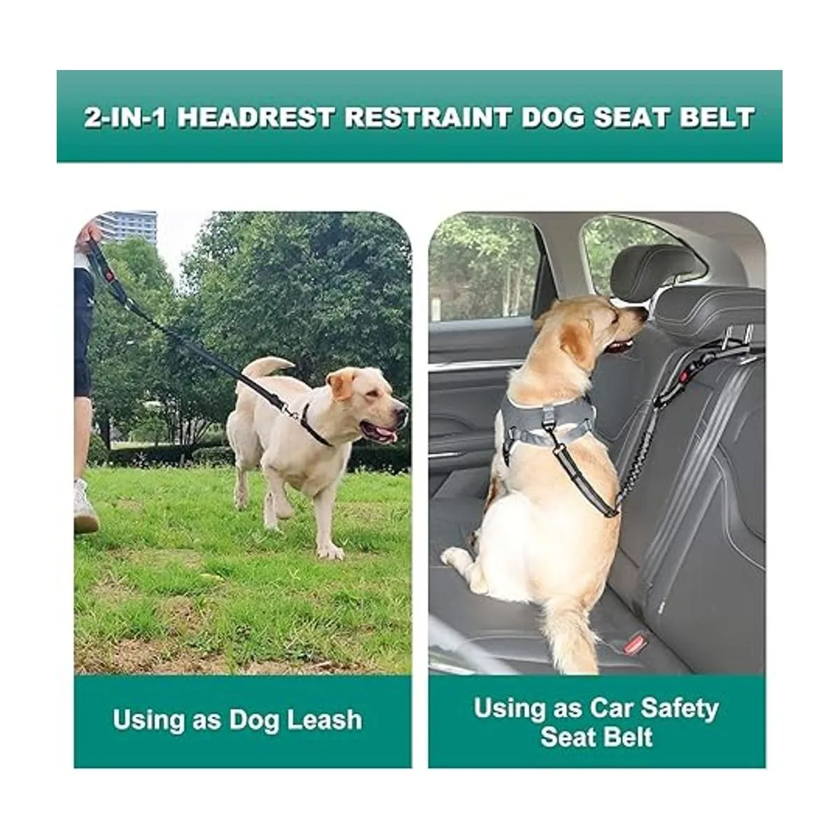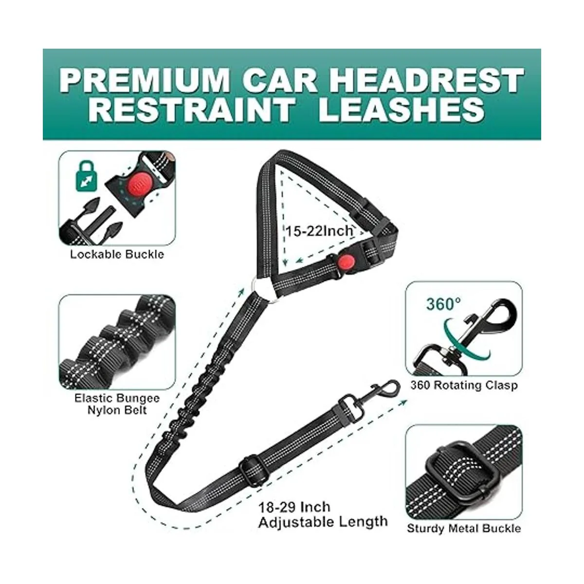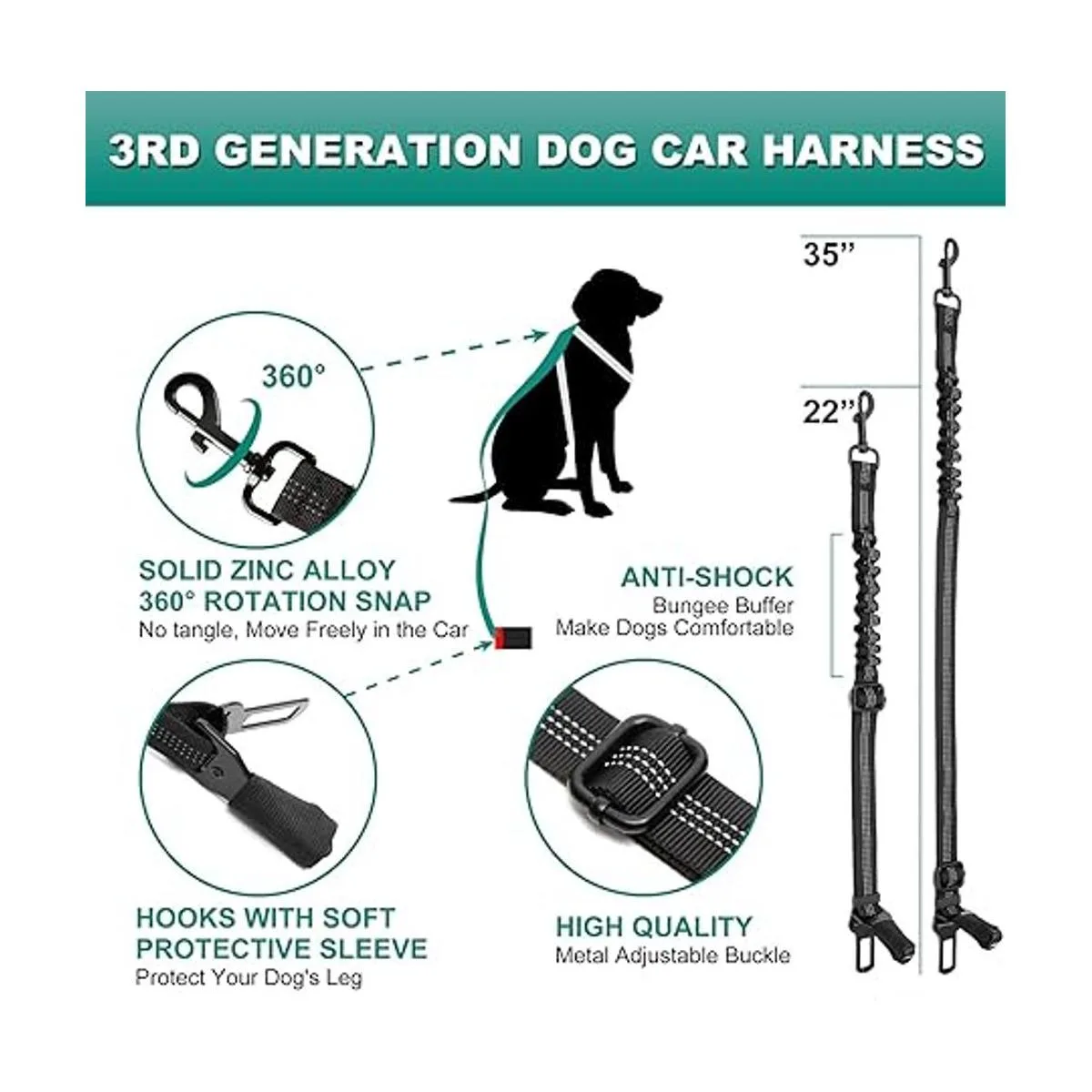 Junreox Paquete de 2 cinturones de seguridad para perro, arnés de cinturón de seguridad para perro de 3 generación con hebilla de metal ajustable, elástico reflectante para reposacabezas de automóvil para perros pequeños, medianos y grandes