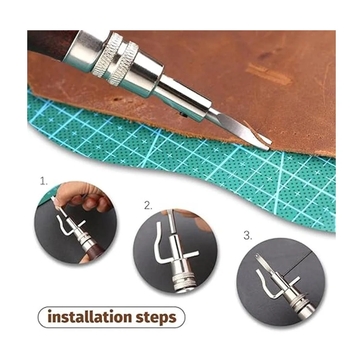 Sellos de cuero y cuchillo giratorio: cuchillo giratorio ajustable que te ayuda a tallar el patrón único que te gusta. 20 tipos de diferentes formas de estampado te ayudan a decorar tus cinturones, carteras, fundas de llaves y más, lo que los hace más personalizados y únicos.