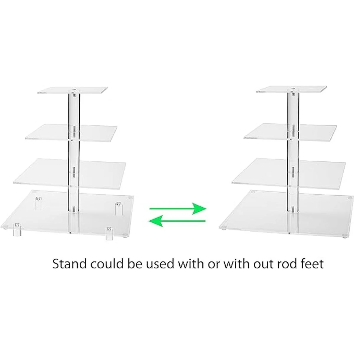 Design: The rod feet on the bottom are removable, the stand can be use with rod feet or with out it. The edges of the acrylic are perfectly clear and polished. Every part of the stand has been accurately cut and finished.