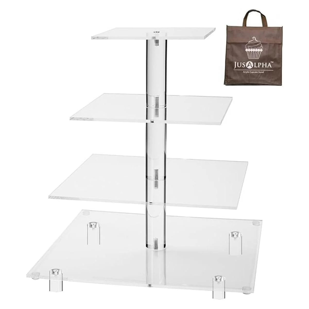 Jusalpha, soporte de acrílico para pastel, cuadrado y resistente, con 4 niveles, torre para exhibir postres, Transparente
