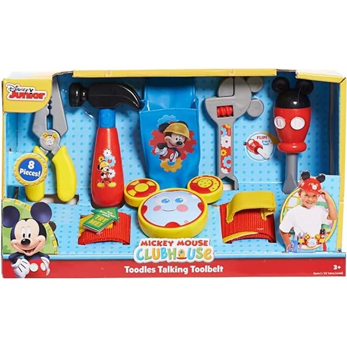 Just Play Disney Mickey Toodles Talkn Toolbelt y accesorios para herramientas de juego para niños para construcción y construcción de juegos de rol y vestirse