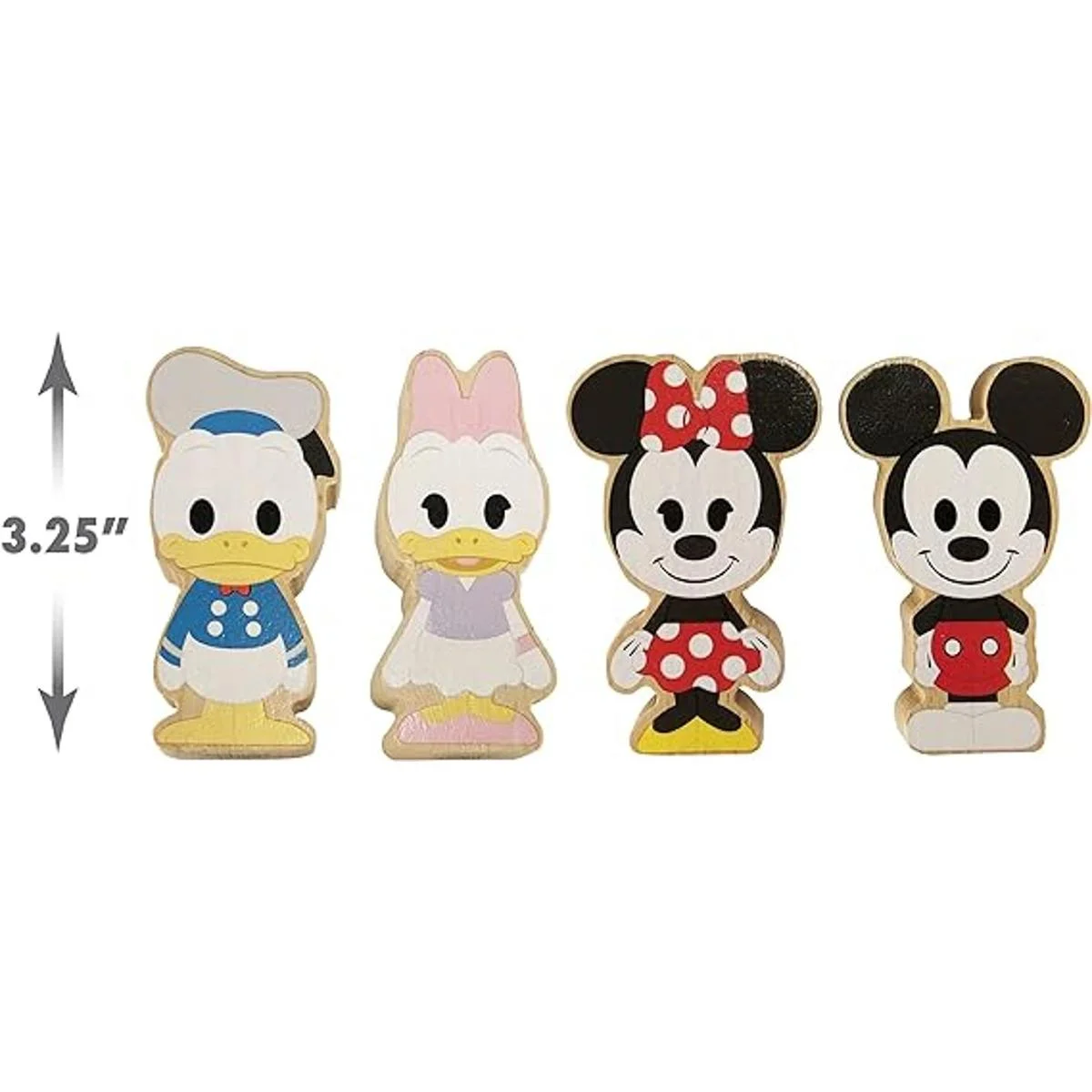 Just Play Juego de figuras de 4 piezas con Mickey Mouse de Disney Wooden Toys, Minnie Mouse, la Pata Daisy y el Pato Donald, exclusivo de Amazon