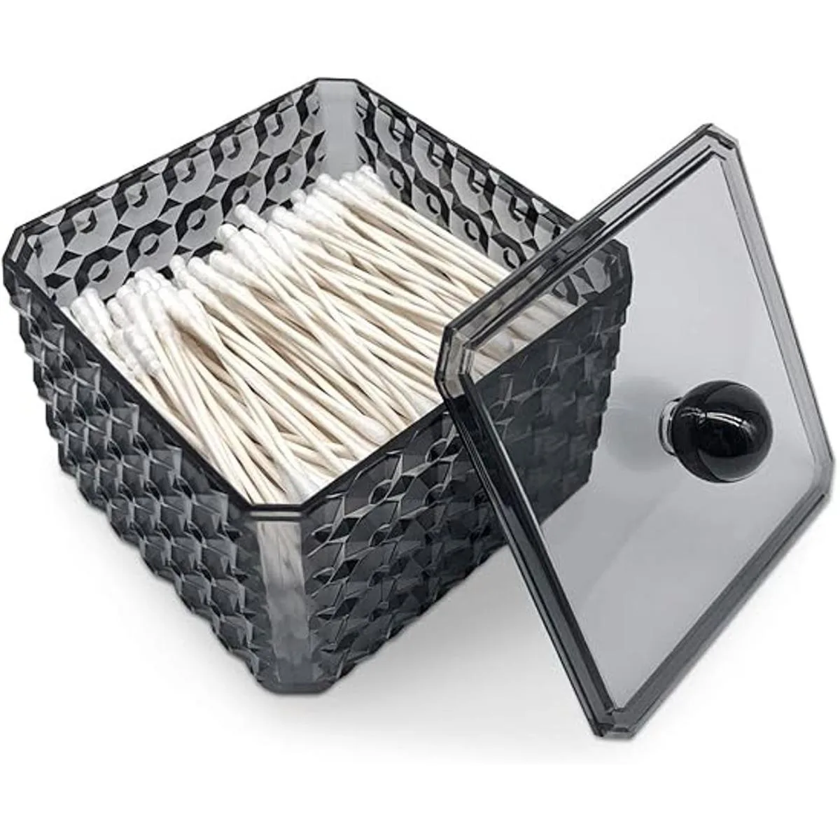 1: Hermoso y funcional: acrílico, de alta calidad, diseño único, duradero, ecológico. Se limpia fácilmente con agua y jabón. Fácil acceso, los bastoncillos de algodón salen de la parte inferior del soporte. El tamaño perfecto ayuda a mantener tu dormitorio o baño ordenado y organizado.