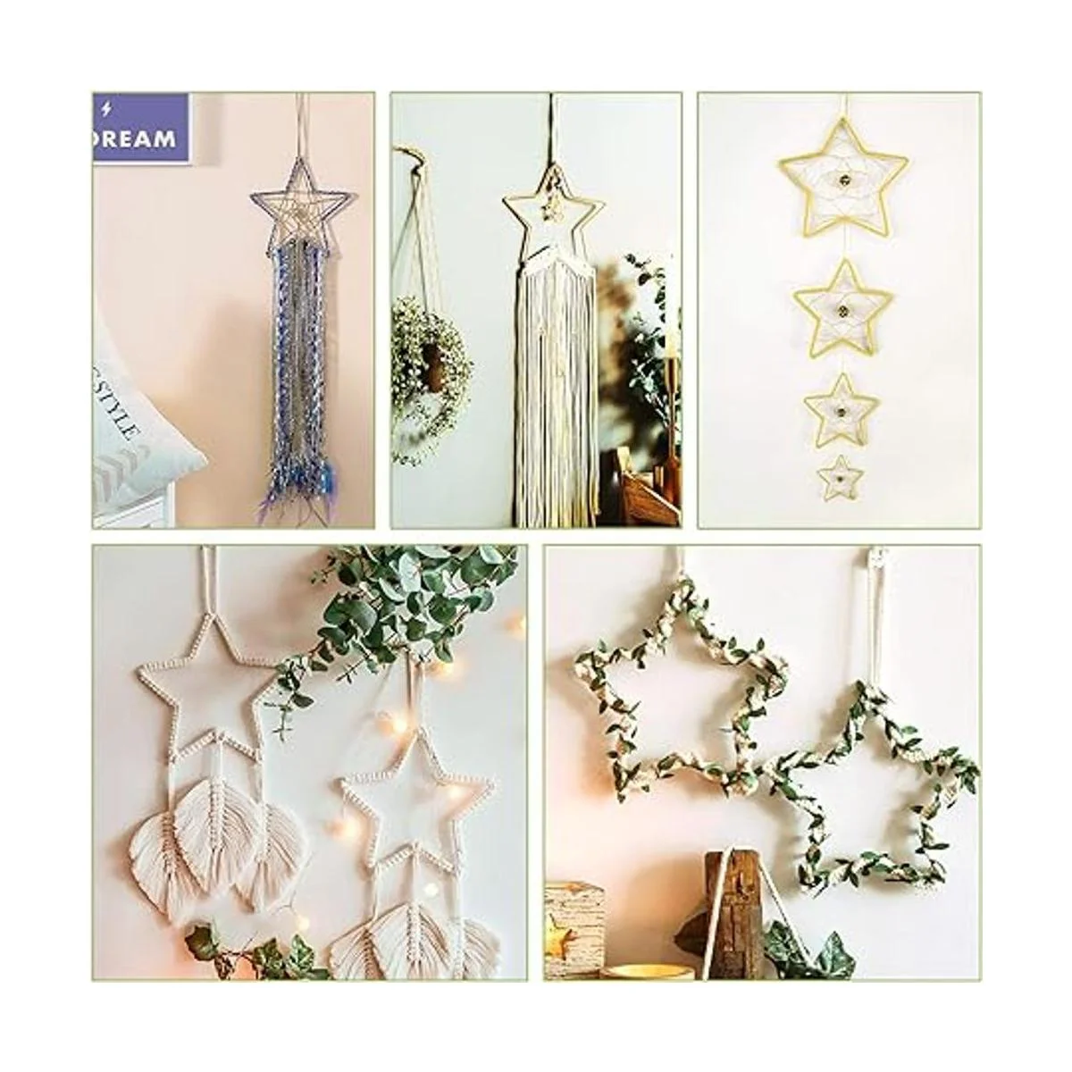 Juego de 8 anillos de atrapasueños en forma de estrella para manualidades en 4 tamaños, 2 piezas para cada aro de metal. Diferentes tamaños para satisfacer tus diferentes necesidades de bricolaje pequeño o grande hecho a mano, corona de boda, diseño de anillos circulares florales o proyectos de macramé para colgar en la pared.