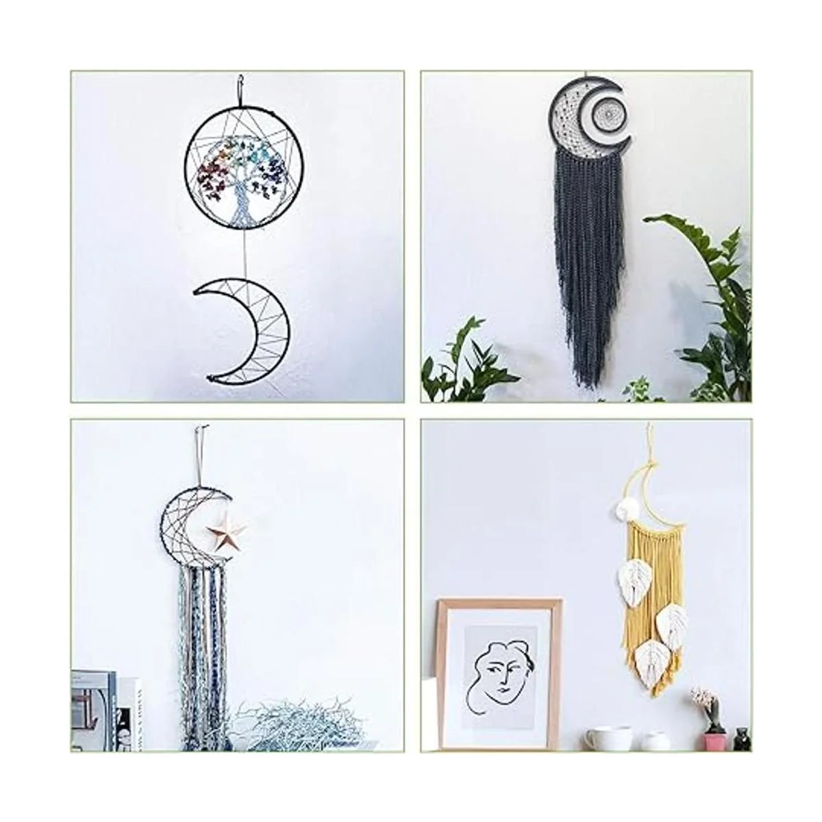 JUTTIRA Anillo de aro de atrapasueños en forma de luna de 12 pulgadas, aros de luna de macramé para manualidades, atrapasueños, proyectos de pared de macramé, decoración de corona