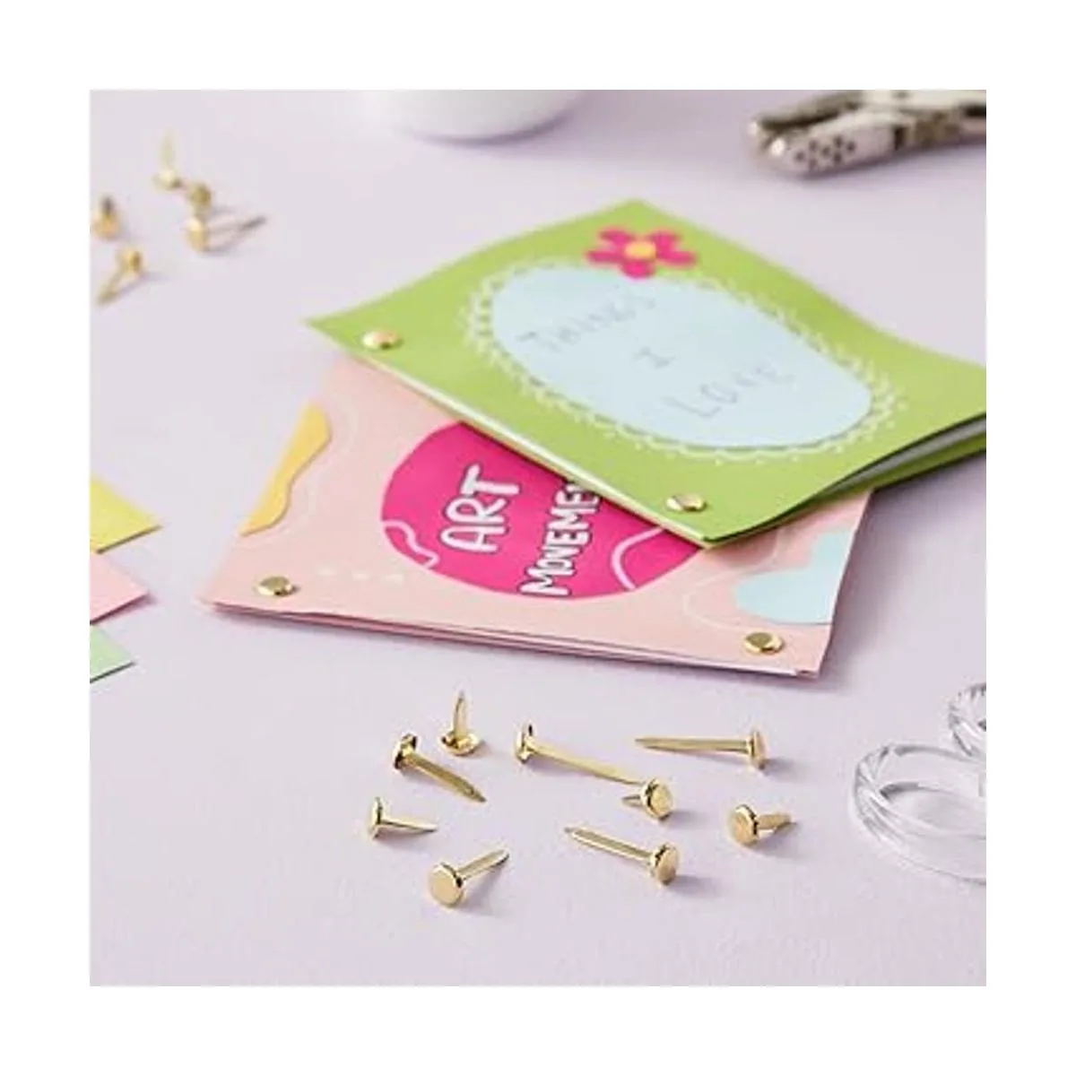 Clavos de metal: utiliza este juego de 500 mini clavos surtidos para manualidades de papel, informes de libros escolares, informes de negocios, registros financieros o proyectos de aula