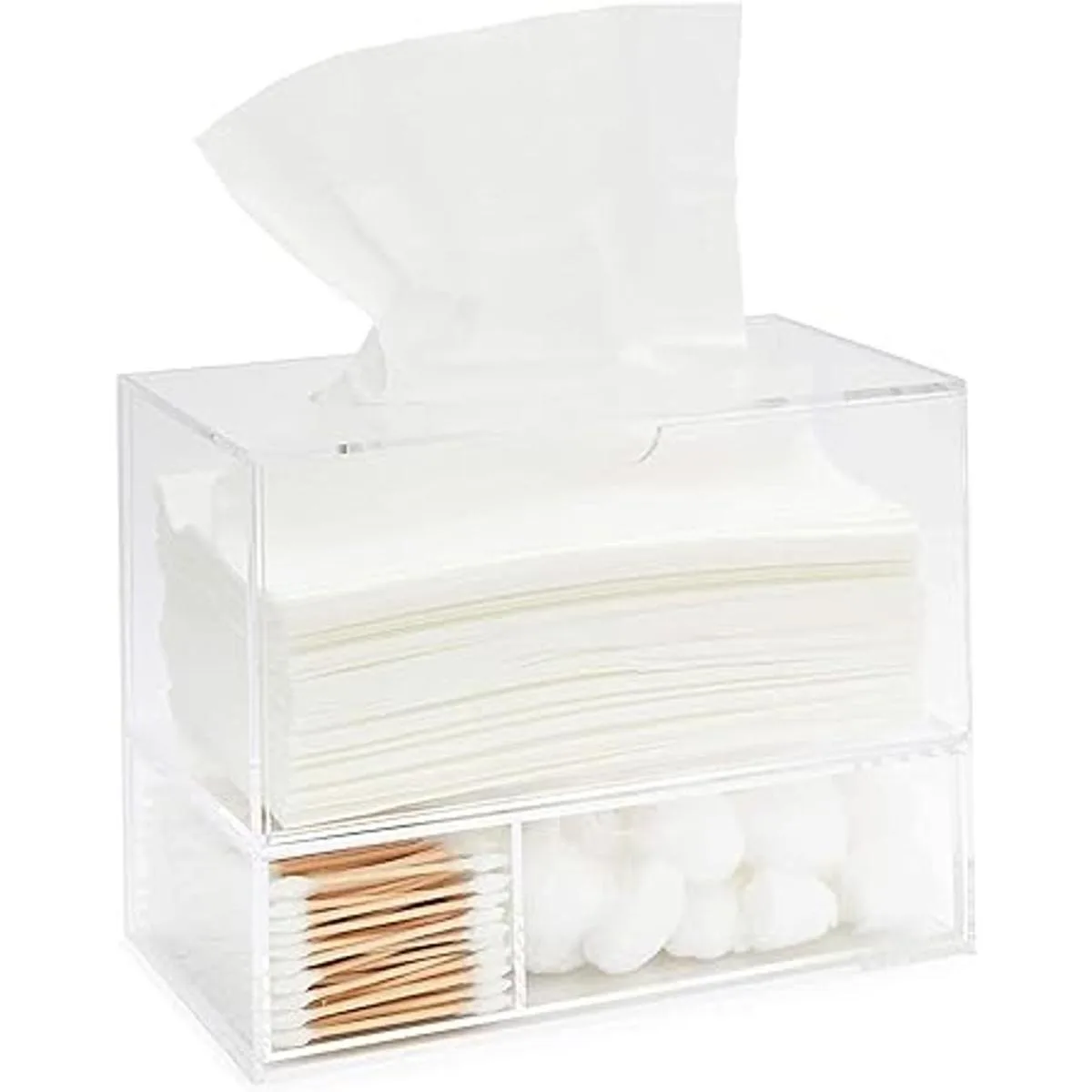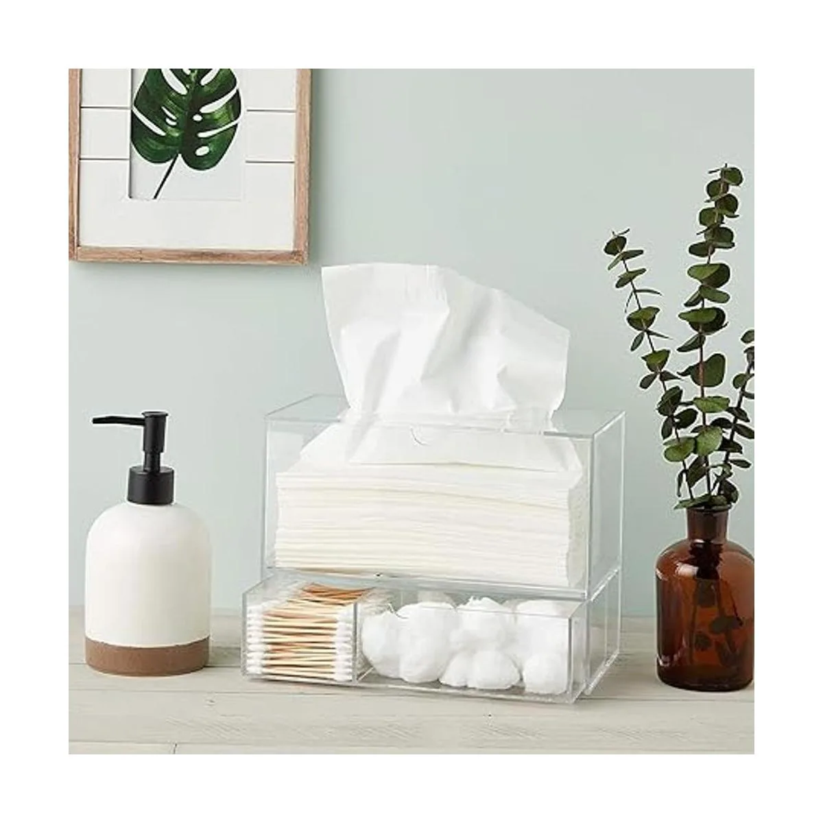 Juvale Caja dispensadora de pañuelos acrílicos con cajón extraíble para baño (9.3 x 7 x 5 pulgadas)