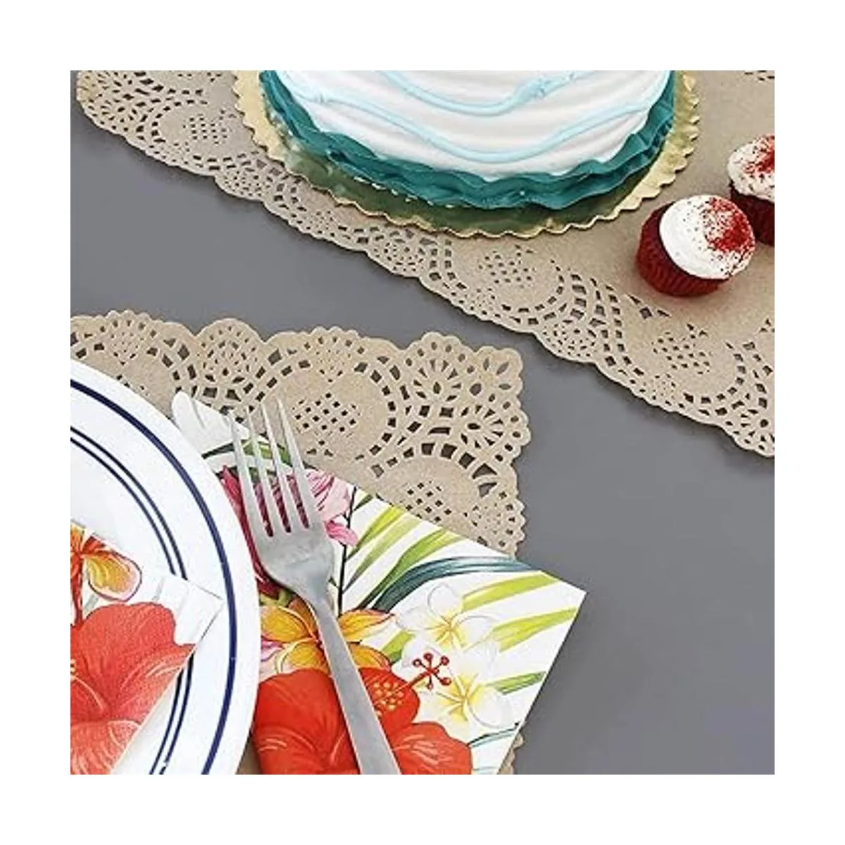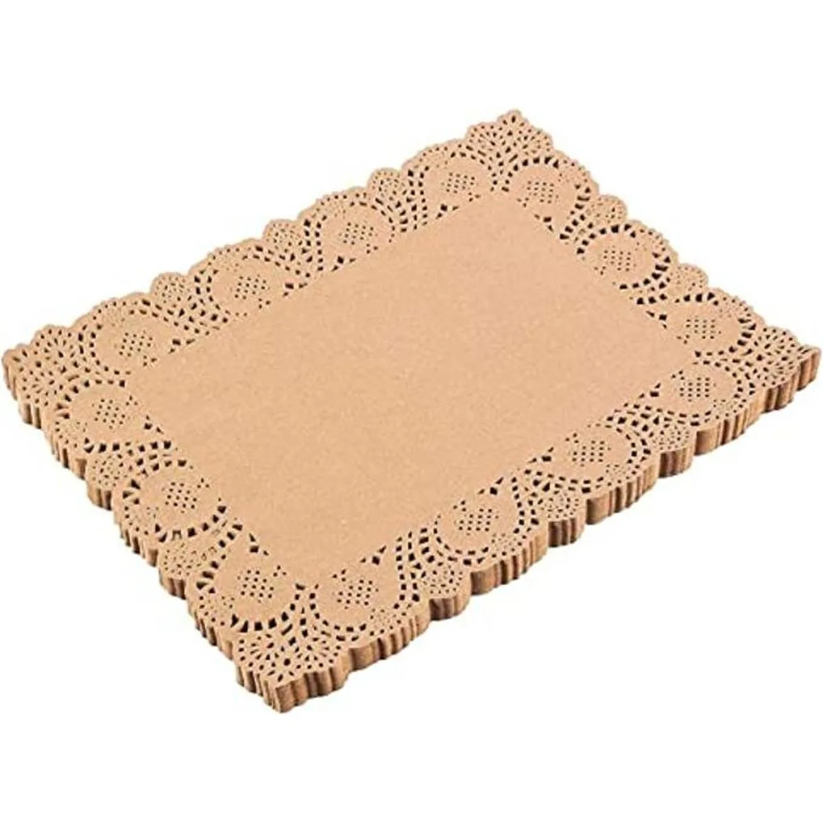 Juvale Doilies de papel de encaje marrón, manteles individuales rectangulares para decoración 15.5 x 11.7 pulgadas, paquete de 100 unidades