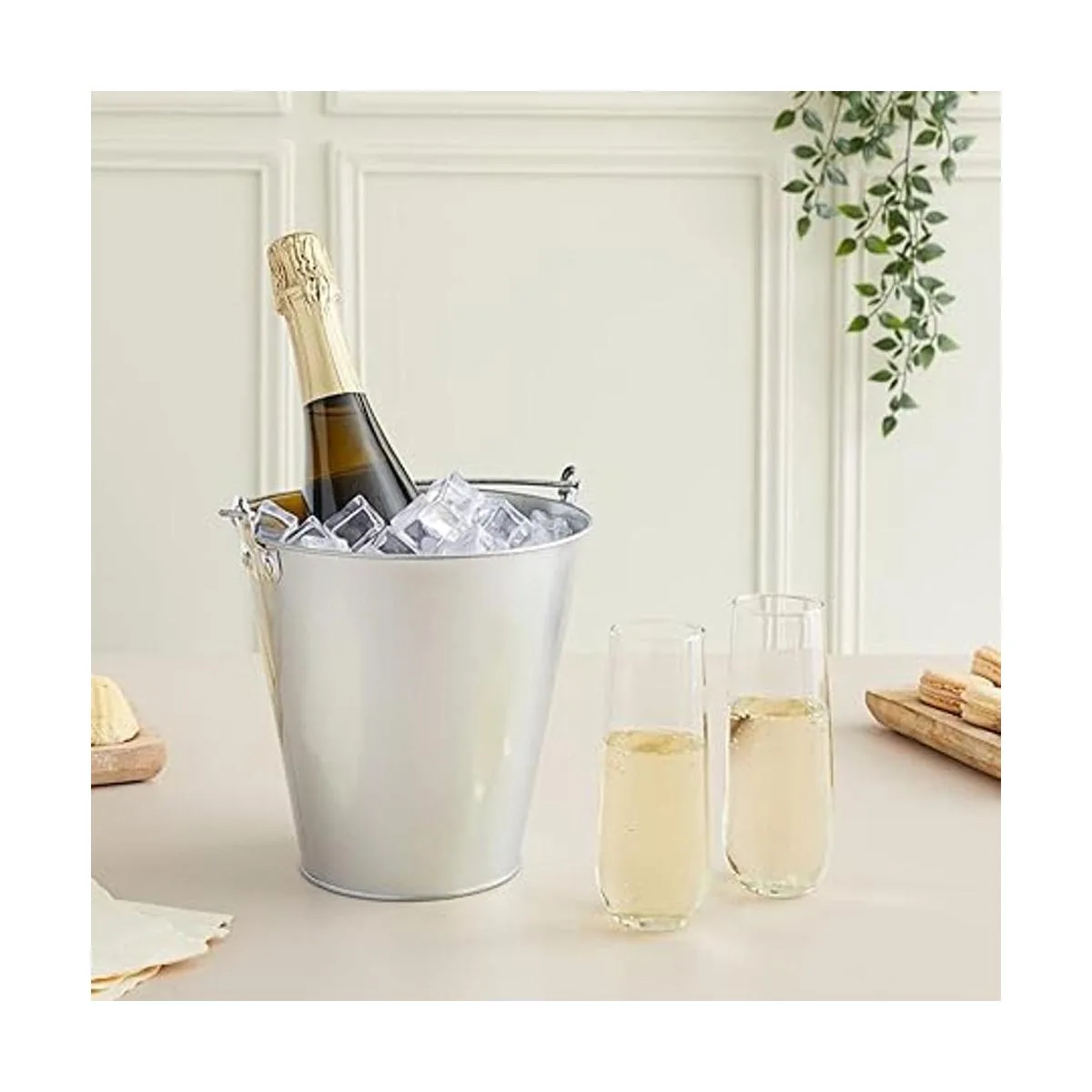 Calidad fiable: este juego de cubo de champán de metal está hecho de material de estaño galvanizado y cuenta con un asa resistente para transportar y transportar tus bebidas
