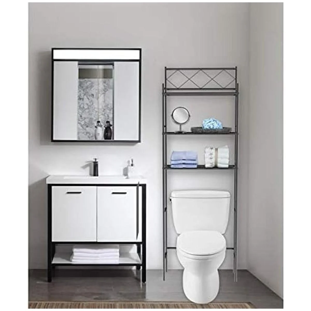 JV TEXTILES Organizador de baño de 3 estantes sobre el inodoro, ahorrador de espacio de baño negro