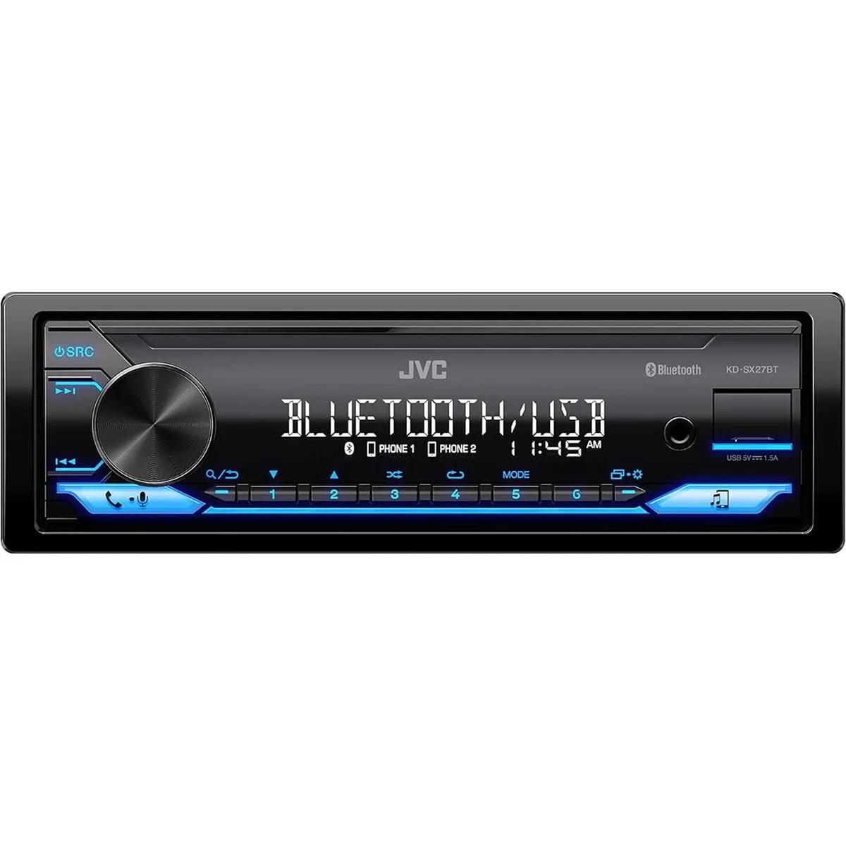 JVC KDSX27BT Receptor estéreo Bluetooth para automóvil con puerto USB, radio AMFM, reproductor de MP3, LCD de alto contraste, placa frontal desmontable DIN individual ecualizador de 13 bandas