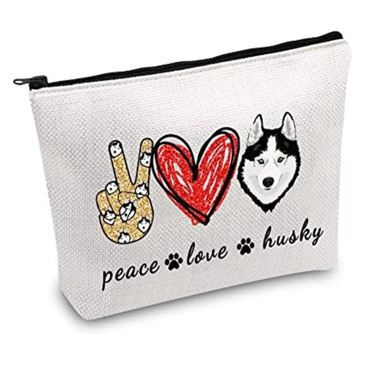 JXGZSO Funny Dog Gift Peace Love Husky Bolsa de cosméticos, paz y amor,,